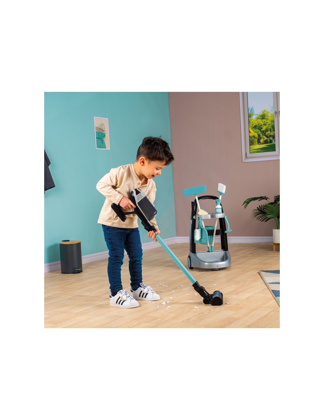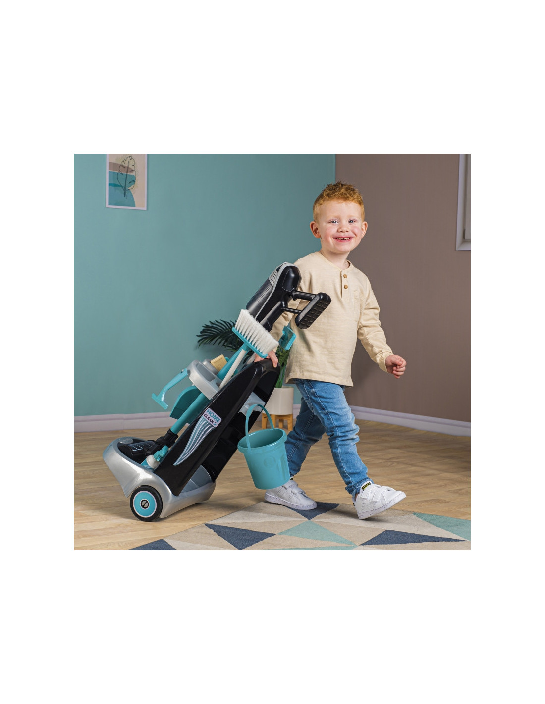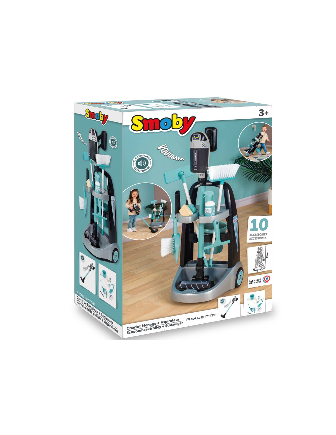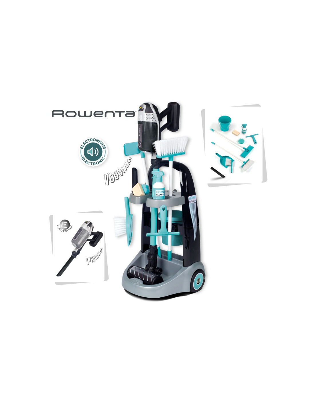 SMOBY Wózek do sprzątania z odkurzaczem Rowenta z dźwiękiem + 10 akcesoriów