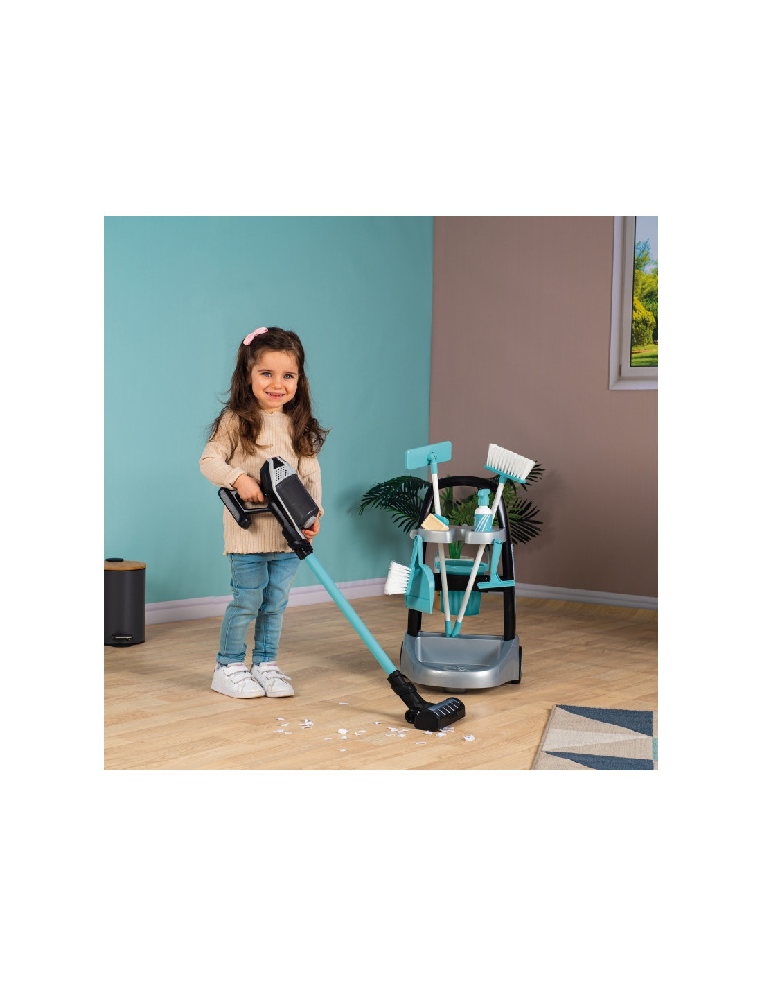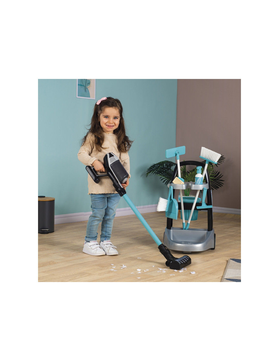 - - Zestaw składa się z wózka, na którym możemy umieścić elektroniczny odkurzacz wydający realistyczne dźwięki odkurzania oraz akcesoria.