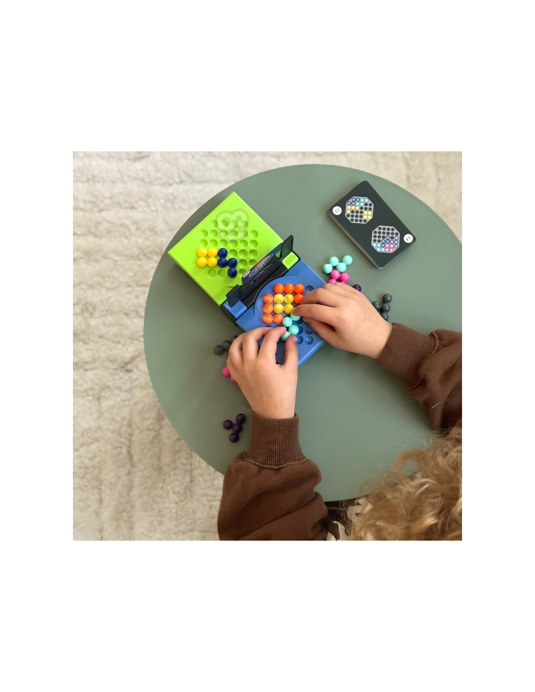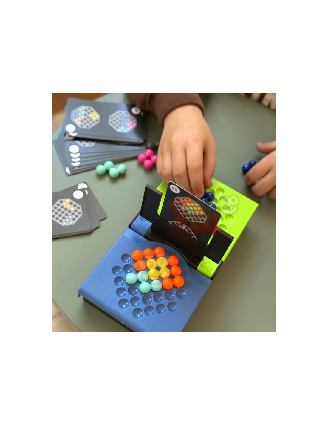- Z puli swoich kolorowych kulek, gracze jak najszybciej starają się ułożyć wzór pokazany na karcie przed nimi