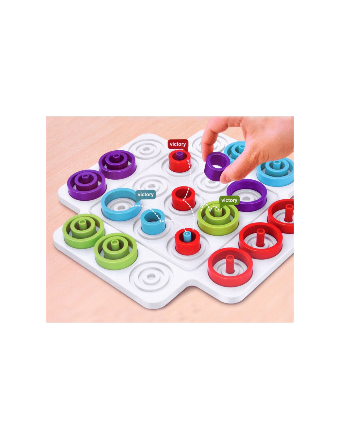 - Aby wygrać, należy ułożyć w jednej linii (pionowo, poziomo lub ukośnie): Trzy pionki tego samego koloru w kolejności: - Od największego do najmniejszego - Pionki tej samej wielkości - Od największego do najmniejszego