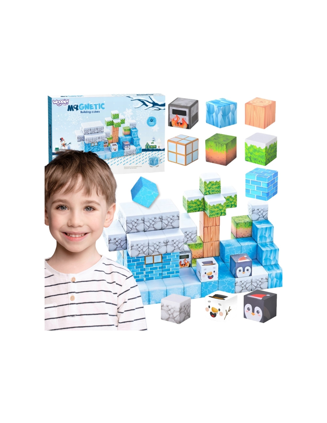 Odkryj zimowy świat kreatywnej zabawy z magnetycznymi klockami! od marki Woopie Ten unikalny zestaw pozwala dzieciom tworzyć konstrukcje przypominające lodowe zamki, drzewa i urocze zwierzątka, takie jak pingwiny czy niedźwiedzie polarne. Dzięki magnesom budowle są stabilne, a same klocki łatwo się łączą i rozłączają, co sprawia, że zabawa nigdy się nie kończy. Zestaw rozwija wyobraźnię, logiczne myślenie oraz zdolności manualne dziecka. To idealny prezent, który łączy naukę i radość tworzenia w jednym!