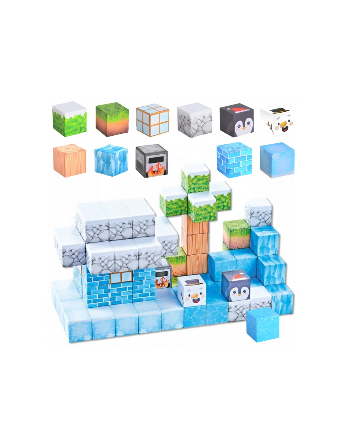 - - 66-elementowy zestaw magnetycznych klocków w zimowym stylu