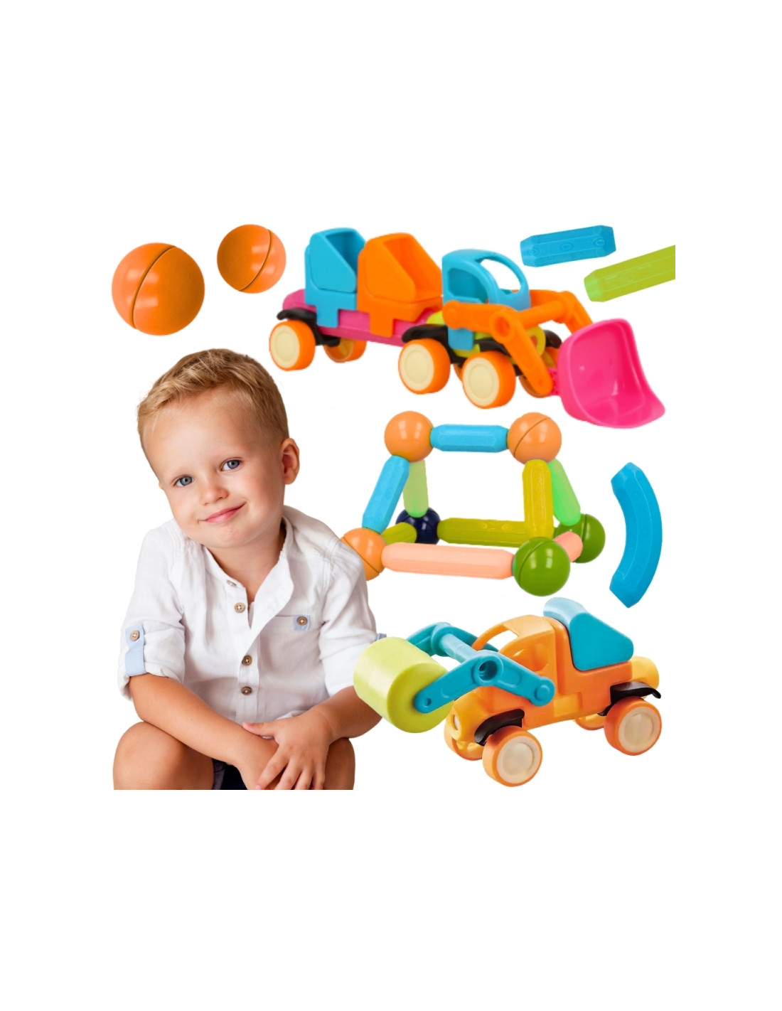 Odkryj fascynujący świat magnetycznej zabawy z zestawem konstrukcyjnym marki Woopie! 52 kolorowe elementy magnetyczne pozwalają dziecku budować nieograniczone ilości pojazdów oraz konstrukcji, gdzie wesołe samochodziki będą przemierzać trasy pełne przygód. Silne magnesy zapewniają stabilne połączenia, a różnorodne kształty i kolory stymulują wyobraźnię i kreatywność podczas zabawy.