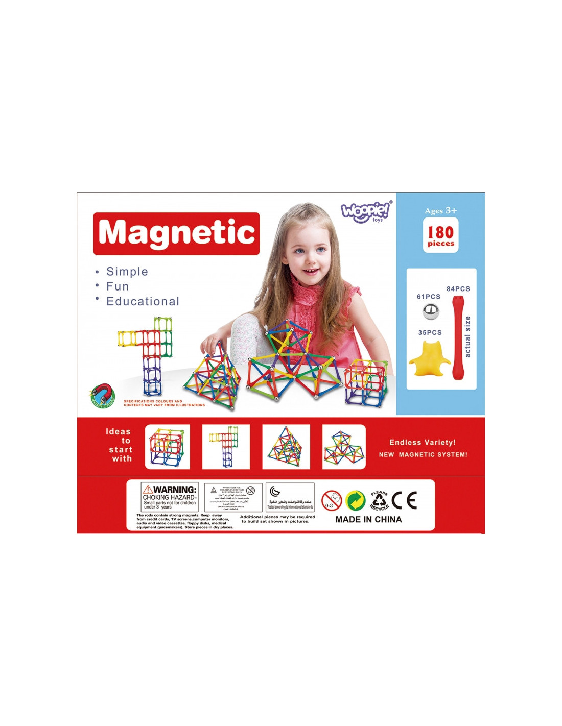 WOOPIE Magnetic Construction Blocks Creative Puzzle 180 pcs.