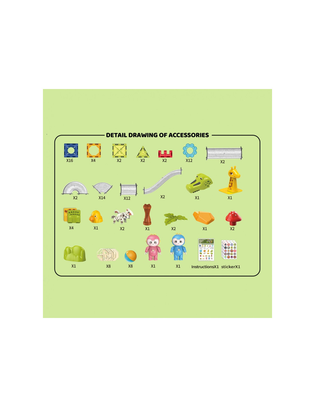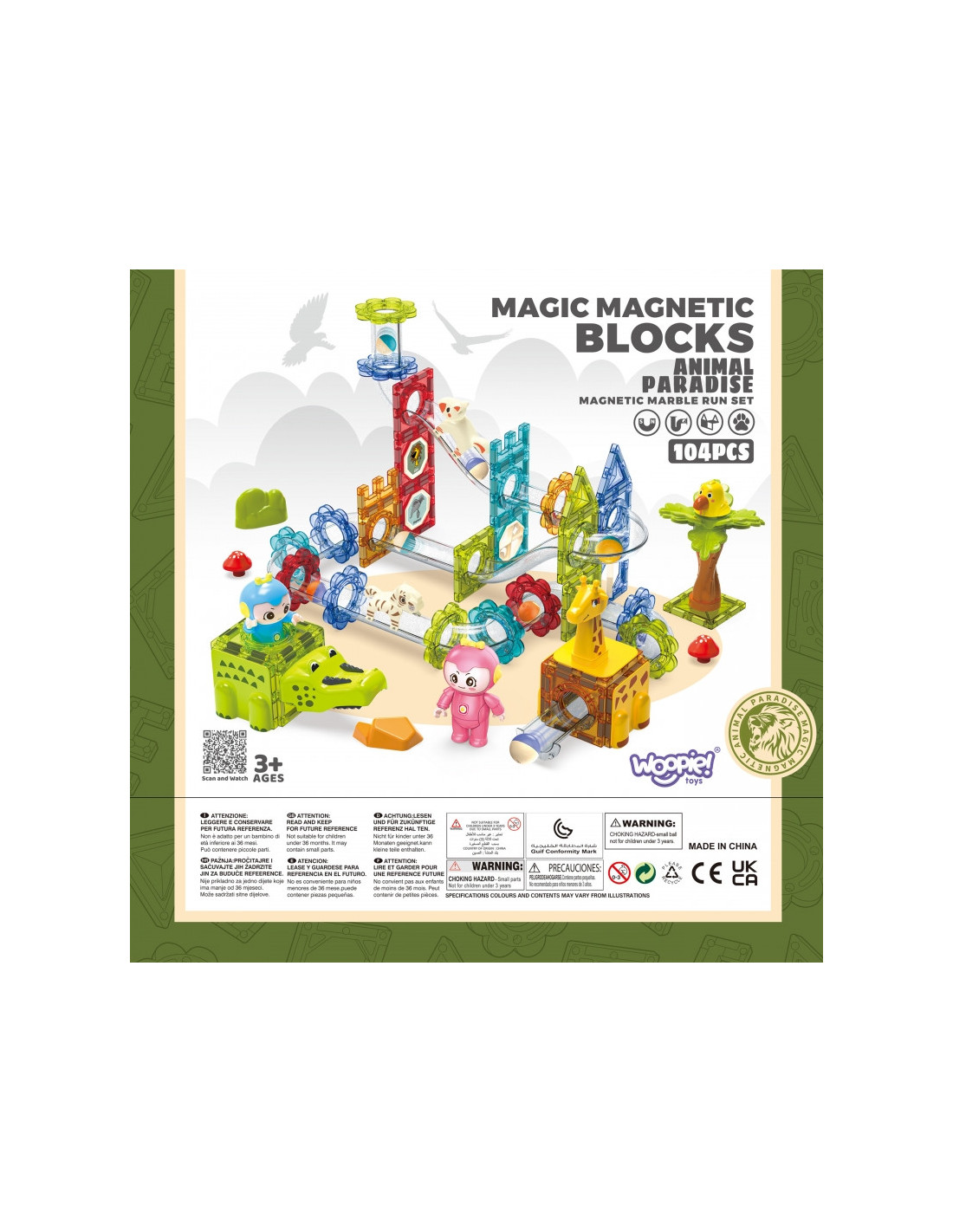 WOOPIE Klocki Magnetyczne Tor Kulkowy Zwierzęcy Raj 104 el.