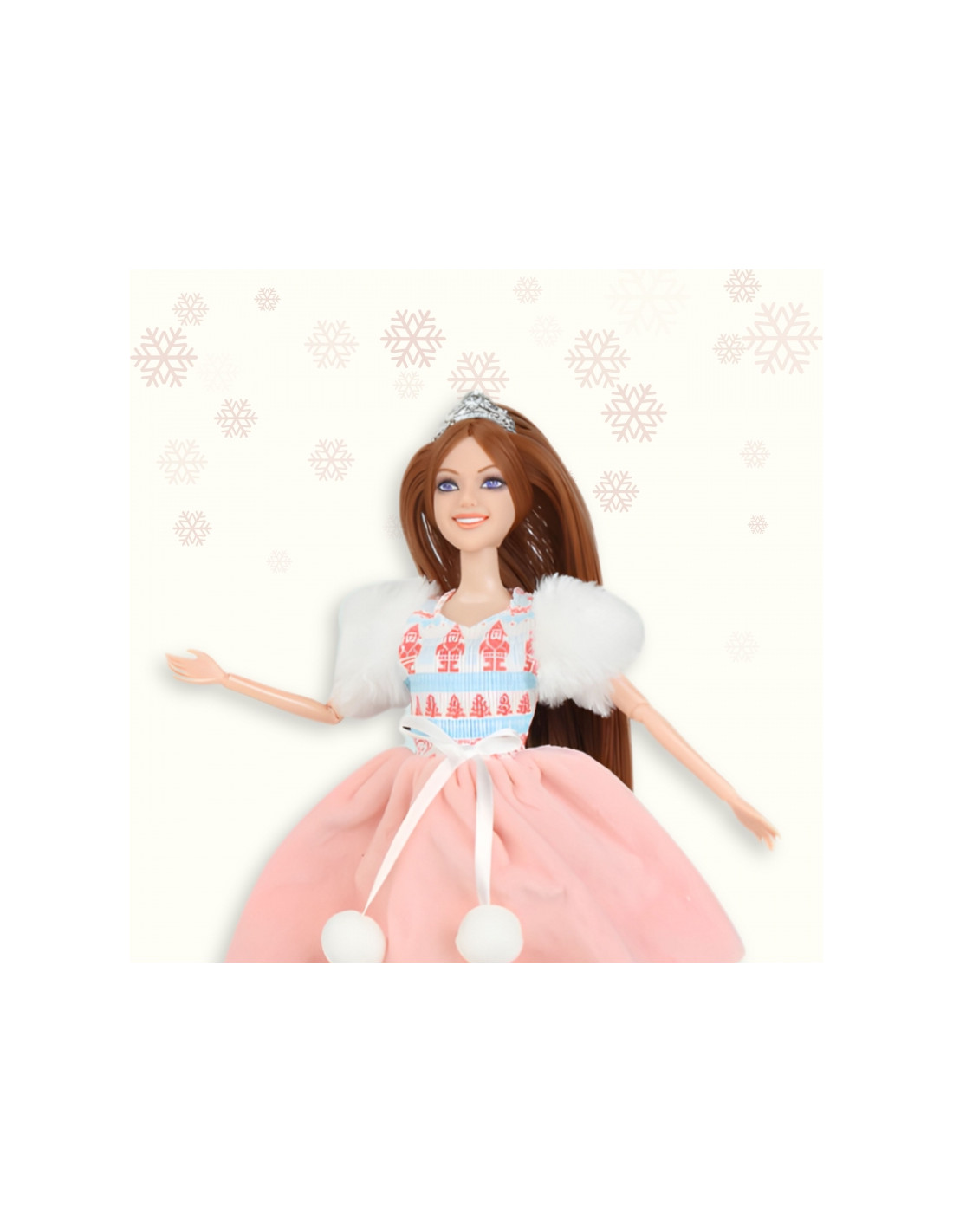 Lalka Emi z misiem i zimową sukienką od marki Woopie to wyjątkowa zabawka, która przeniesie każde dziecko w magiczny świat mody i marzeń. Piękna lalka o długich, brązowych włosach z koroną na głowie, ubrana w zimową sukienkę z pomponami w futerkowymi rękawkami zachwyci każdą małą miłośniczkę stylu. W zestawie znajduje się również uroczy miś – wierny towarzysz zabawy oraz akcesoria: prezent, tort i talerzyk z kawałkiem tortu. Strój i akcesoria są w różowo-białej kolorystyce, Zabawka wyróżnia się wysoką jakością wykonania, nowoczesnym designem oraz licznymi detalami, które sprawiają, że zabawa staje się jeszcze bardziej realistyczna i angażująca. Zestaw z lalką Emilka to nie tylko piękna ozdoba pokoju, ale przede wszystkim źródło radości, kreatywności i rozwoju dla Twojego dziecka. Dzięki niej maluch może tworzyć własne historie, bawić się w pokaz mody czy przyjęcie z pupilem. To gwarancja długich godzin beztroskiej zabawy pełnej uśmiechu i fantazji!