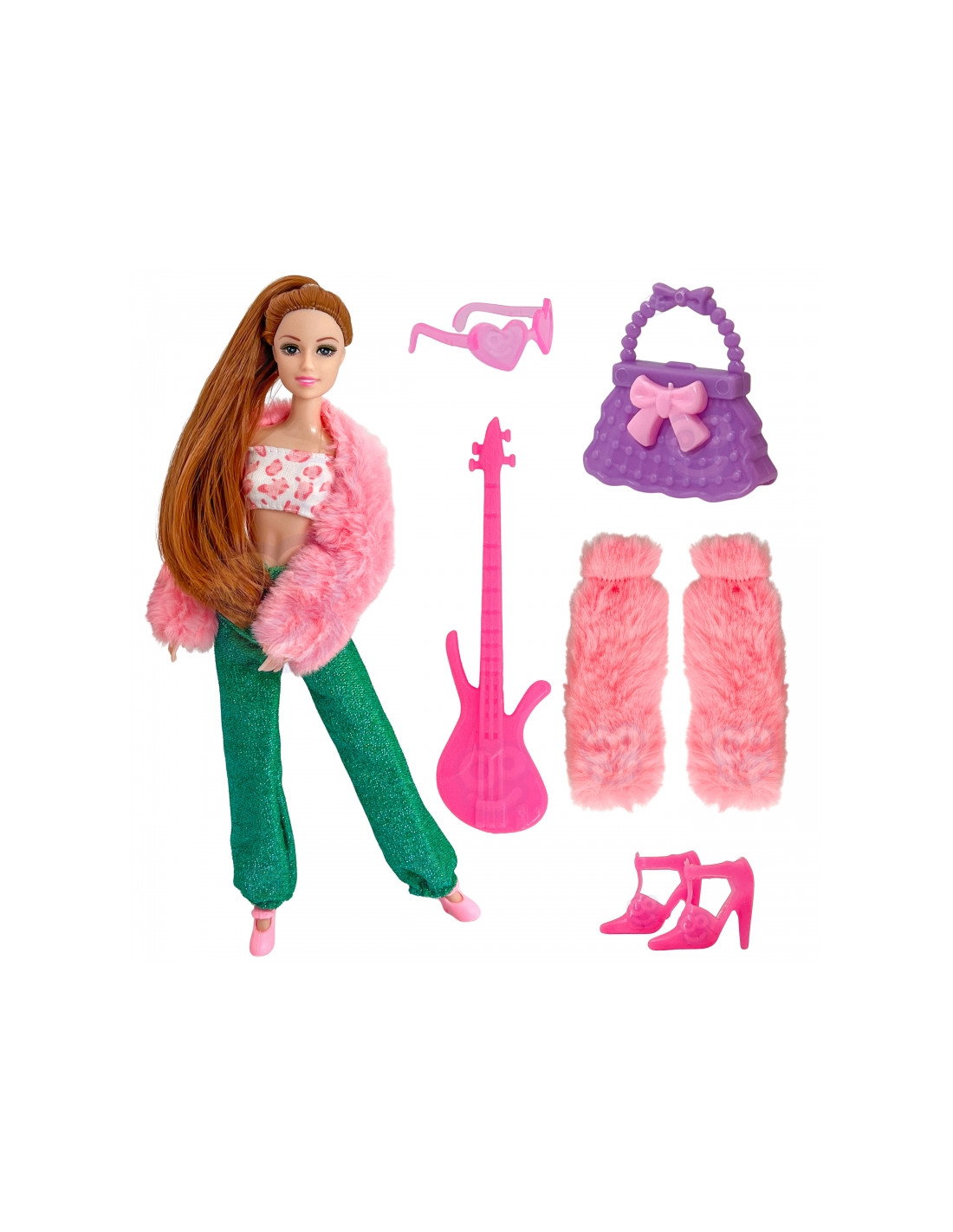 - - Stylowa lalka z długimi włosami i modnym strojem w pastelowych kolorach
