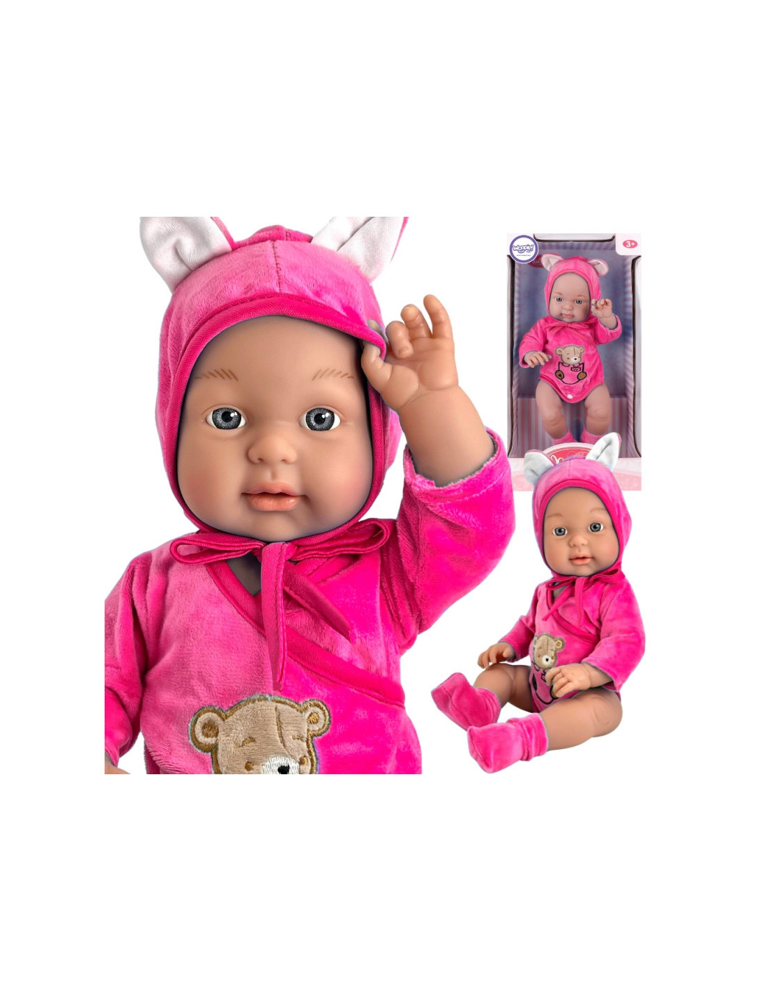 Lalka bobas marki Woopie rozkocha w sobie każde dziecko! Bobas ma 46 cm i jest ubrany w strój / body z kapturęm i bucikami. Lalka posiada ruchome kończyny, dzięki czemu można ustawić ją w pozycji siedzącej lub stojącej. Dzięki zabawie lalką dziecko rozwija w sobie poczucie empatii oraz odpowiedzialności. Laleczka jest uroczym, małym bobaskiem, który potrzebuje dużo troski i miłości. Zabawka wykonana z dużą starannością, wiernie oddająca wygląd prawdziwego bobasa, dopracowana w najdrobniejszych szczegółach, a materiał dodatkowo niezwykle przyjemny w dotyku!