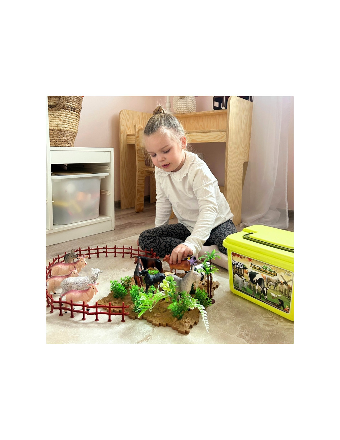 Zestaw figurek Farma od marki WOOPIE, to świetny pomysł na prezent dla małych fanów świata zwierząt. Zestaw zawiera 12 różnorodnych realistycznie odwzorowanych figurek zwierząt, 44 akcesoria i kuferek. Zestaw doskonale sprawdzi się do nauki przez zabawę. Dzieci będą mogły nauczyć się rozpoznawania gatunków zwierząt i ich nazywania. Zestaw jest wyposażony w praktyczny kuferek z wygodną rączką, który pozwala nie tylko na szybkie posprzątanie, ale także na zabranie go w podróż. Realistycznie wyglądające figurki powiększą zbiory małego kolekcjonera, spełnią funkcję edukacyjną oraz zapewnią dobrą zabawę dzięki której maluch poszerzy zakres swojej wyobraźni i kreatywności.