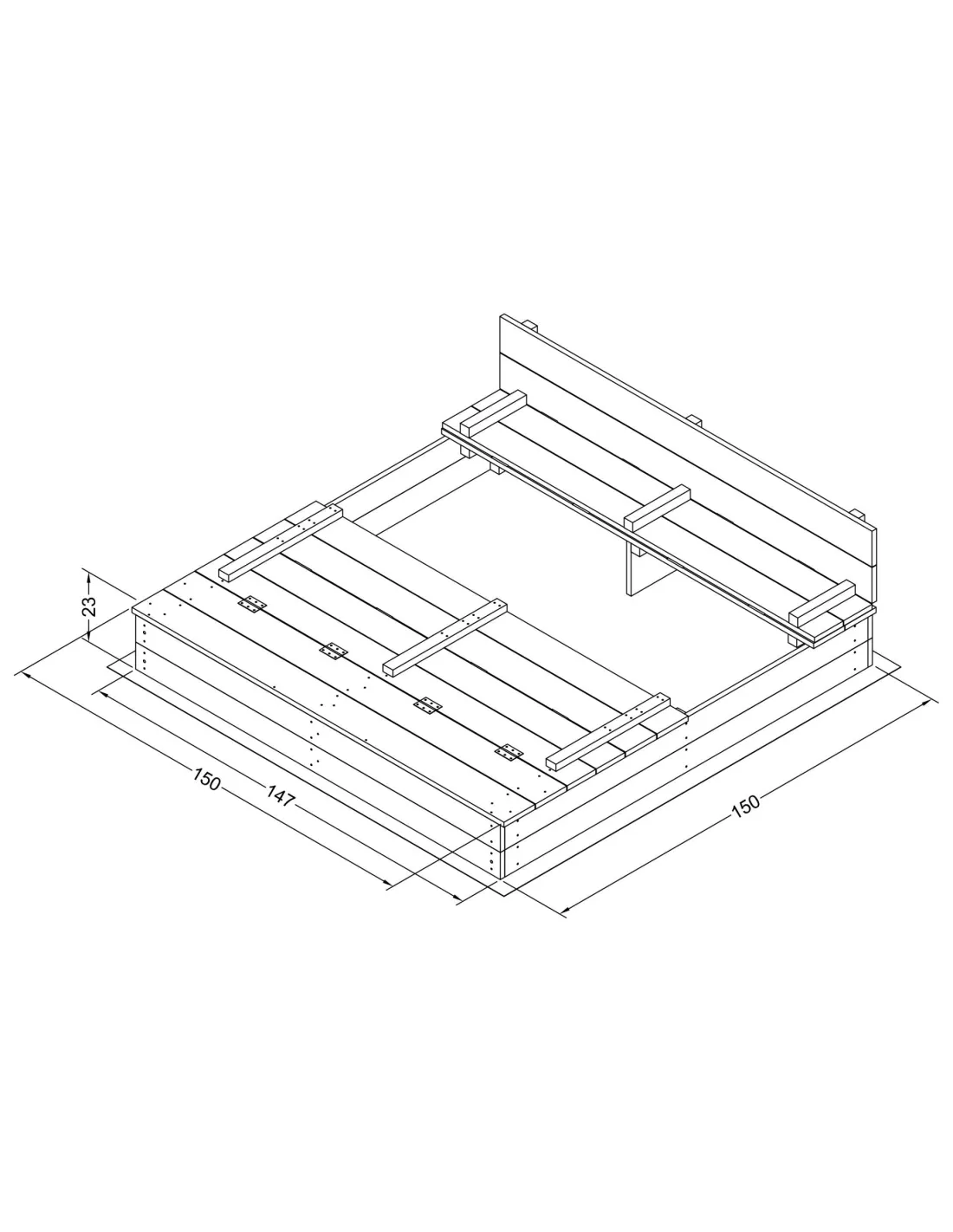 Wymiary po zamknięciu: 150 x 150 x 20 Wymiary wewnętrzne: 142 x 142 x 19 Szerokość ławki: 23