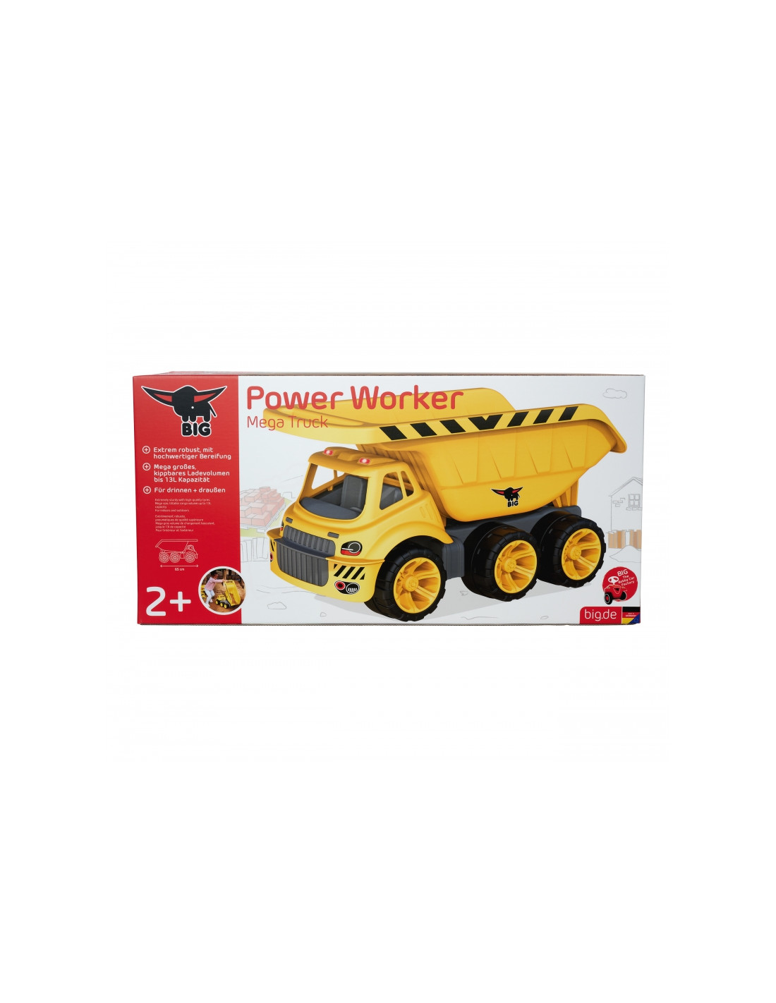 Mega Wywrotka Power Worker od marki BIG to zabawka dla aktywnych dzieci. Zaprojektowana z myślą o małych rączkach, ta wywrotka jest większa niż kiedykolwiek wcześniej i przekracza wszelkie oczekiwania dzięki ogromnej skrzyni wywrotki. Można nią przewozić wszelkiego rodzaju ładunki, czy to piasek, wodę czy inne zabawki.