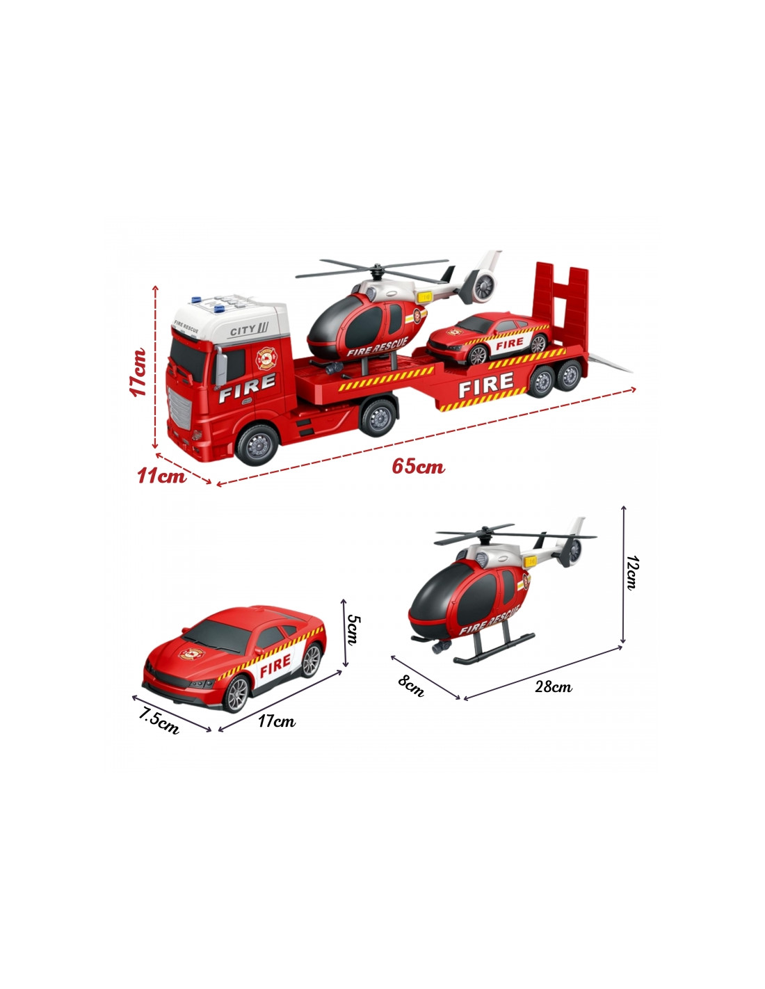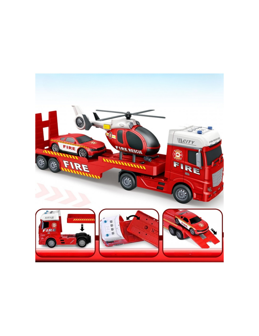 WOOPIE Zestaw Pojazdów Laweta Strażacka Helikopter Samochód Dźwięk Światła