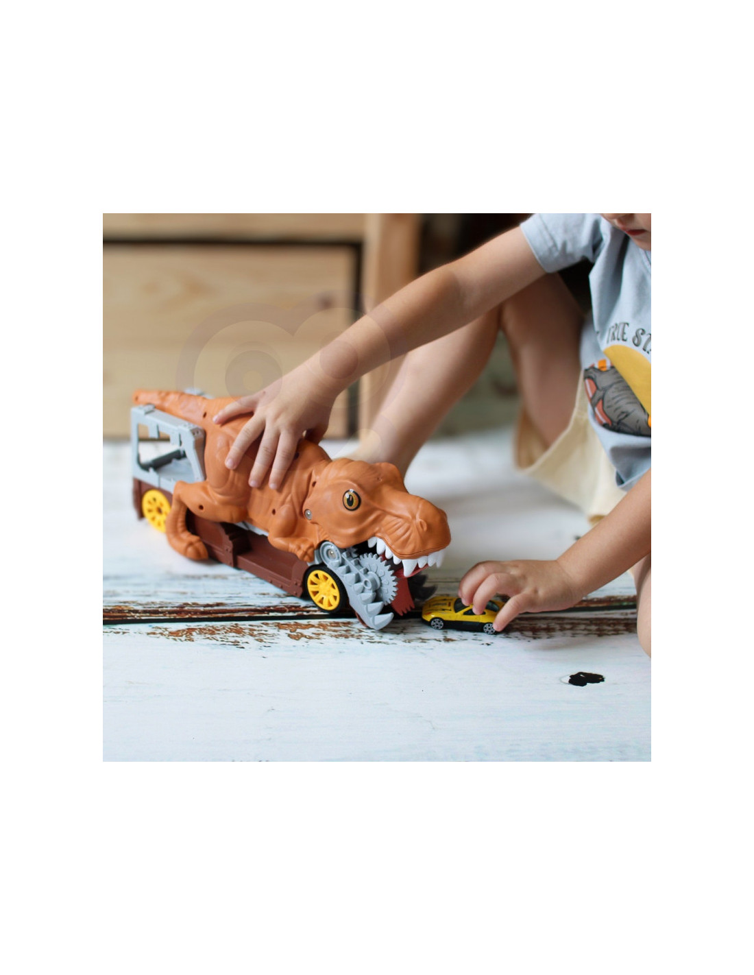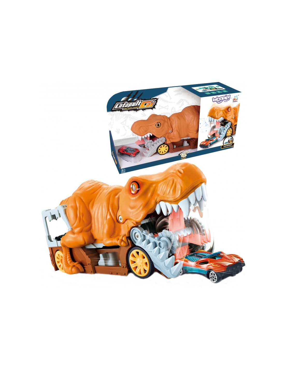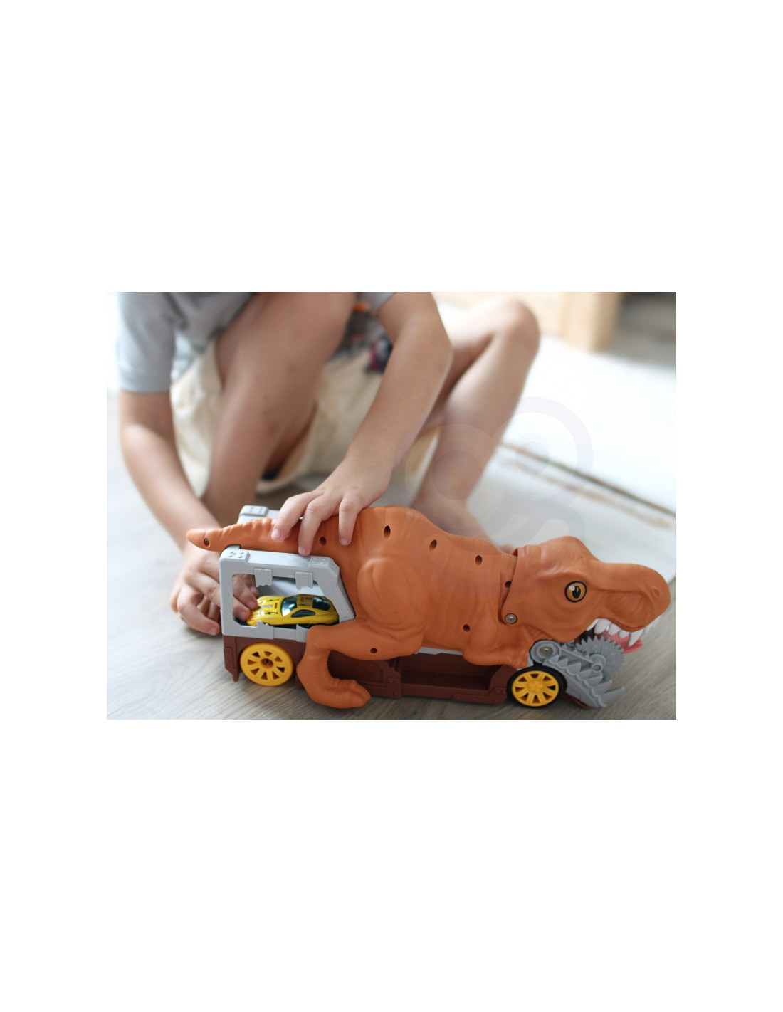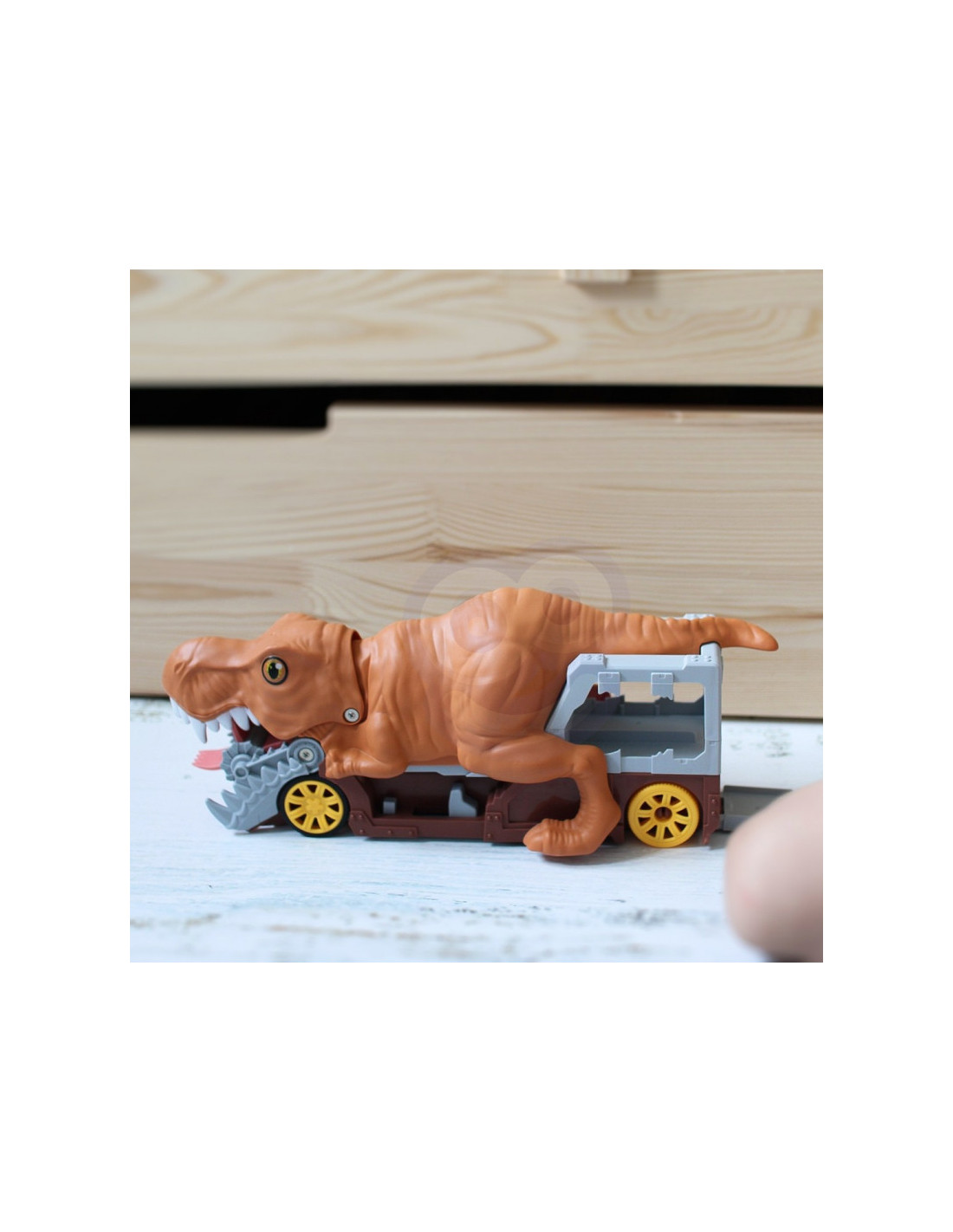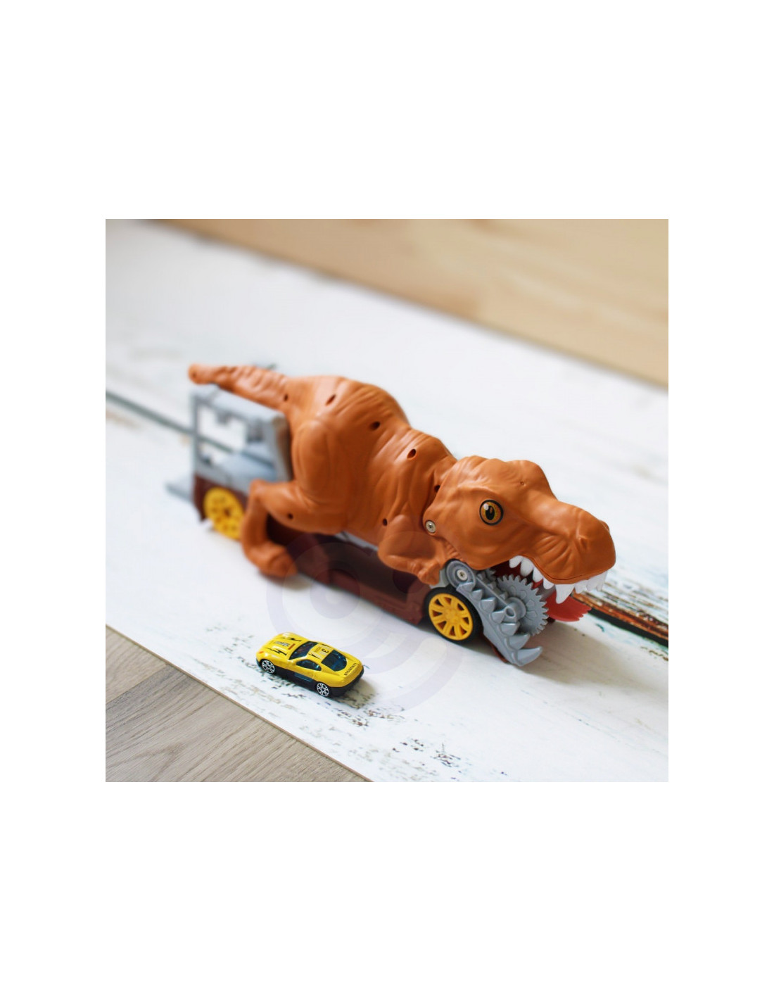 - - dinozaur pożera samochody i wystrzela je z tyłu,