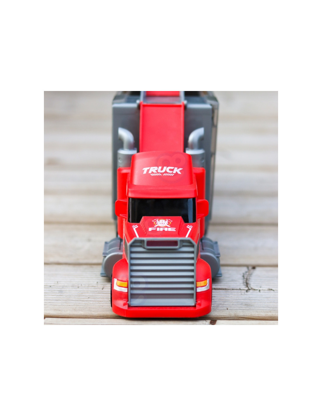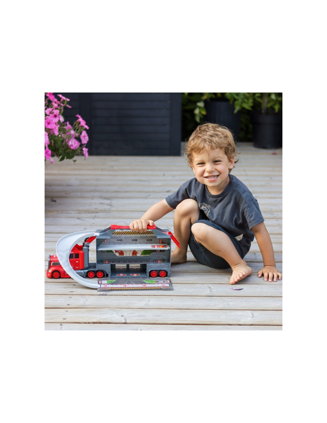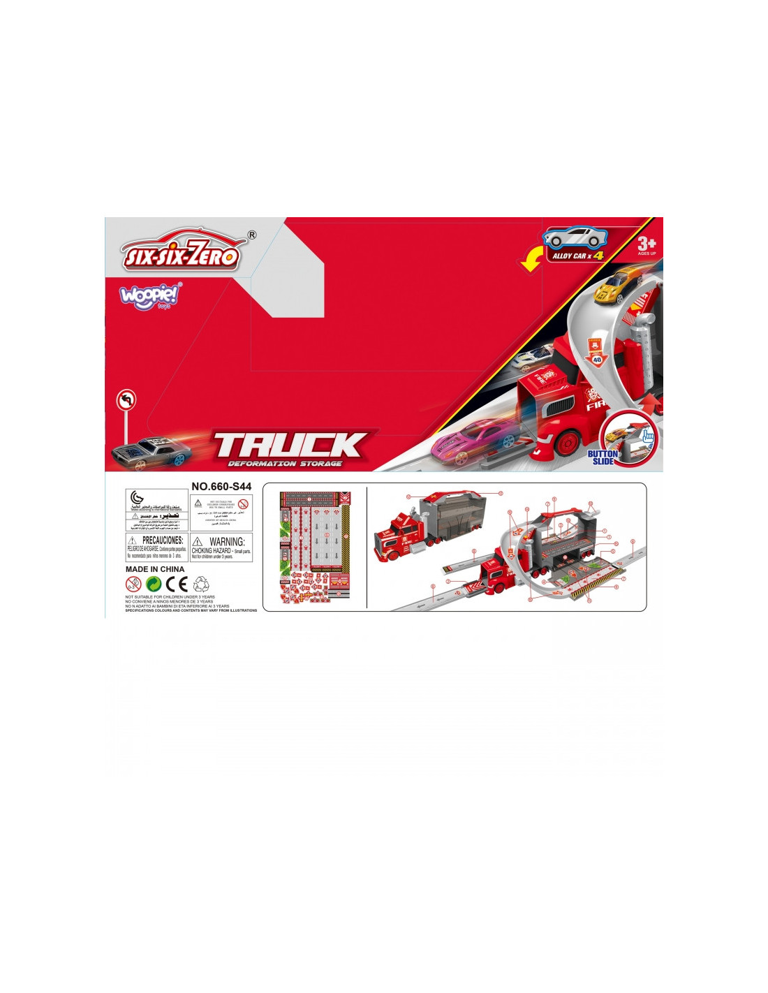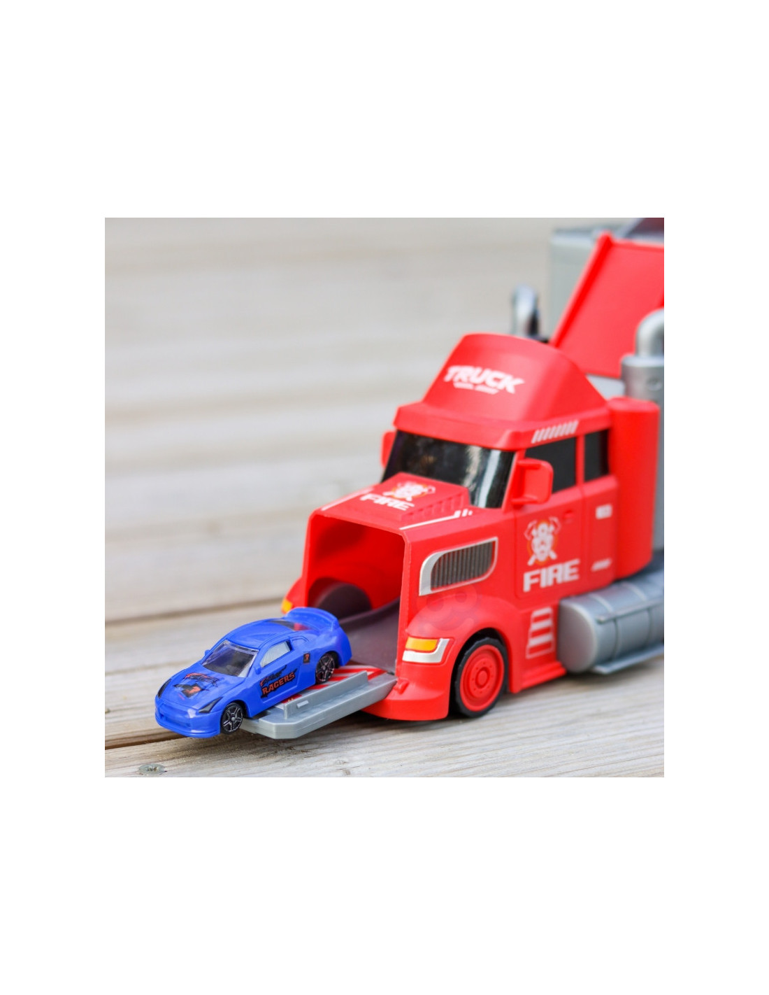 Oto niezwykle funkcjonalna i pełna emocjonującej zabawy ciężarówka strażacka z funkcją garażu i wyrzutni aut marki Woopie, która zaskoczy każdego małego fana motoryzacji! Ta transformująca się ciężarówka w jednej chwili może pełnić rolę klasycznej lawety transportowej, a po rozłożeniu zamienia się w rozbudowany tor wyścigowy z wyrzutnią samochodzików! Po otwarciu naczepy i rozłożeniu elementów, użytkownik zyskuje dostęp do garażu oraz toru wyścigowego, na którym można organizować emocjonujące wyścigi i pojedynki samochodowe. Dzięki dołączonym samochodzikom i interaktywnym elementom, dziecko może tworzyć ekscytujące scenariusze i rozwijać kreatywność. Zabawka gwarantuje wiele godzin świetnej zabawy