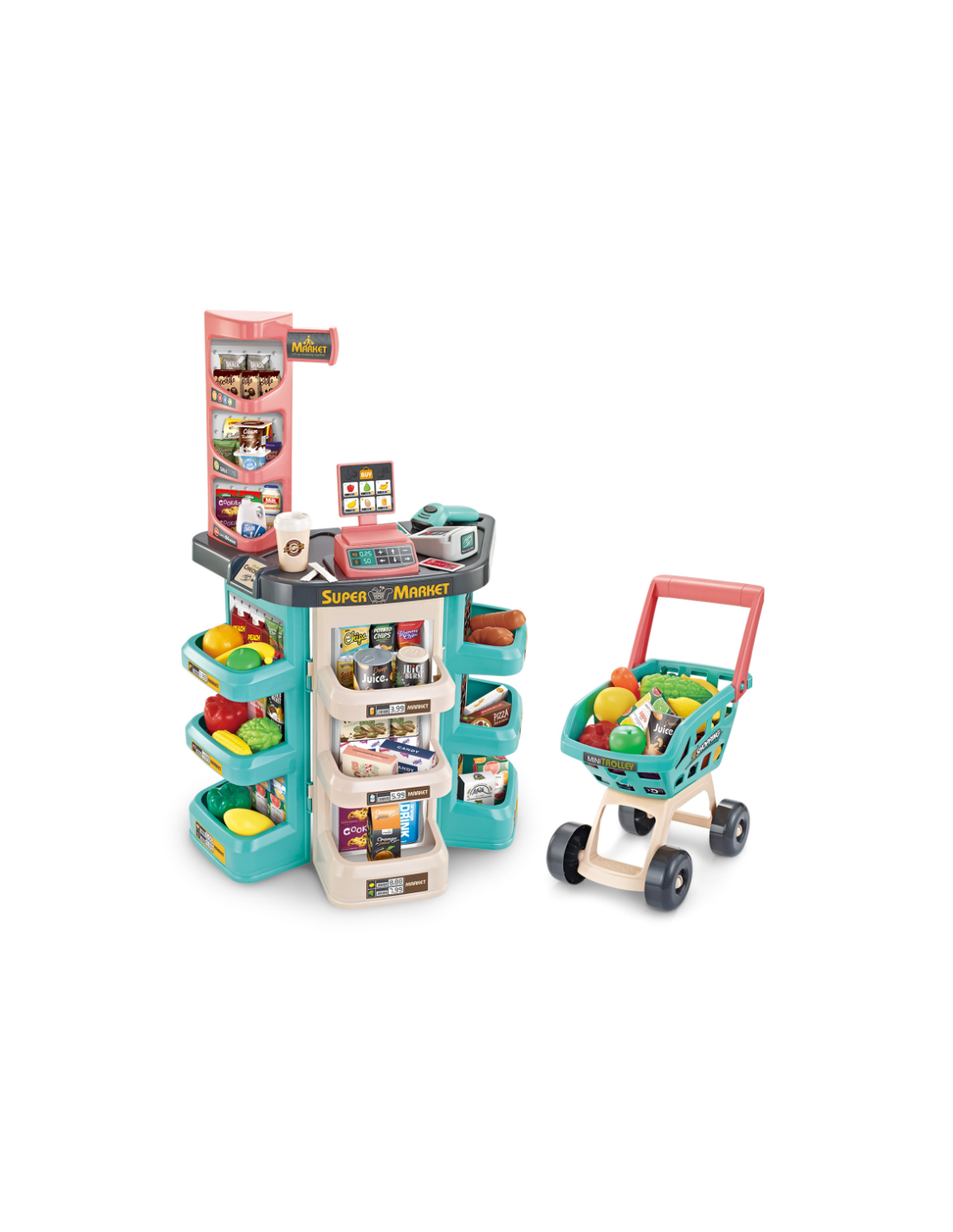WOOPIE Supermarket Store and Trolley Shopping Cart Checkout Scale Scanner 47 acc