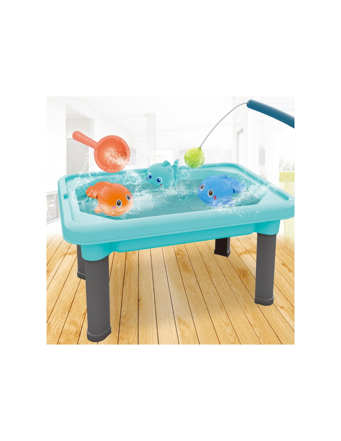 - - 3 w 1: stolik, piaskownica, gra łowienie rybek