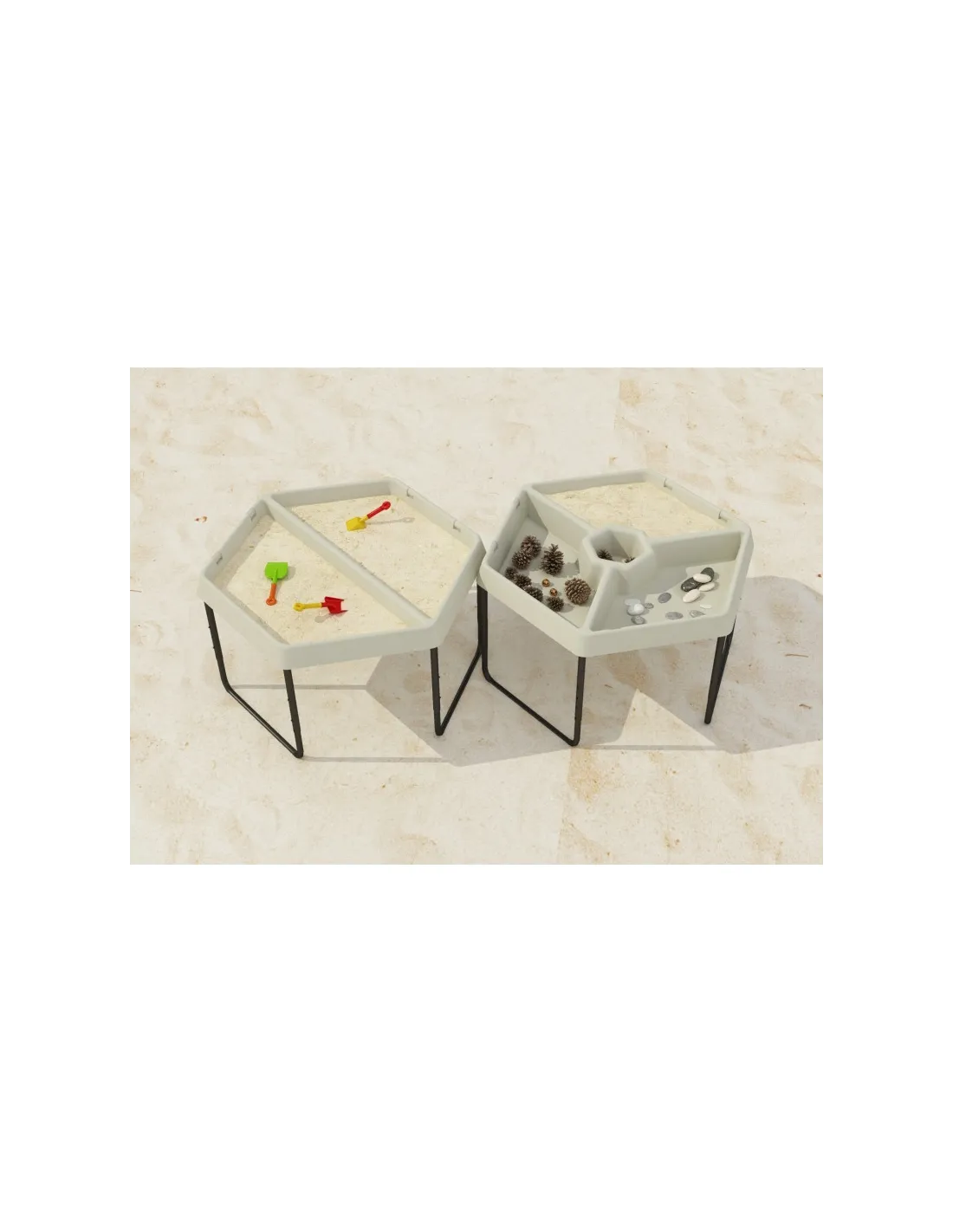 MASTERKIDZ Hexagonal Sand and Water Play Table with 2 Compartments and Adjustable Height