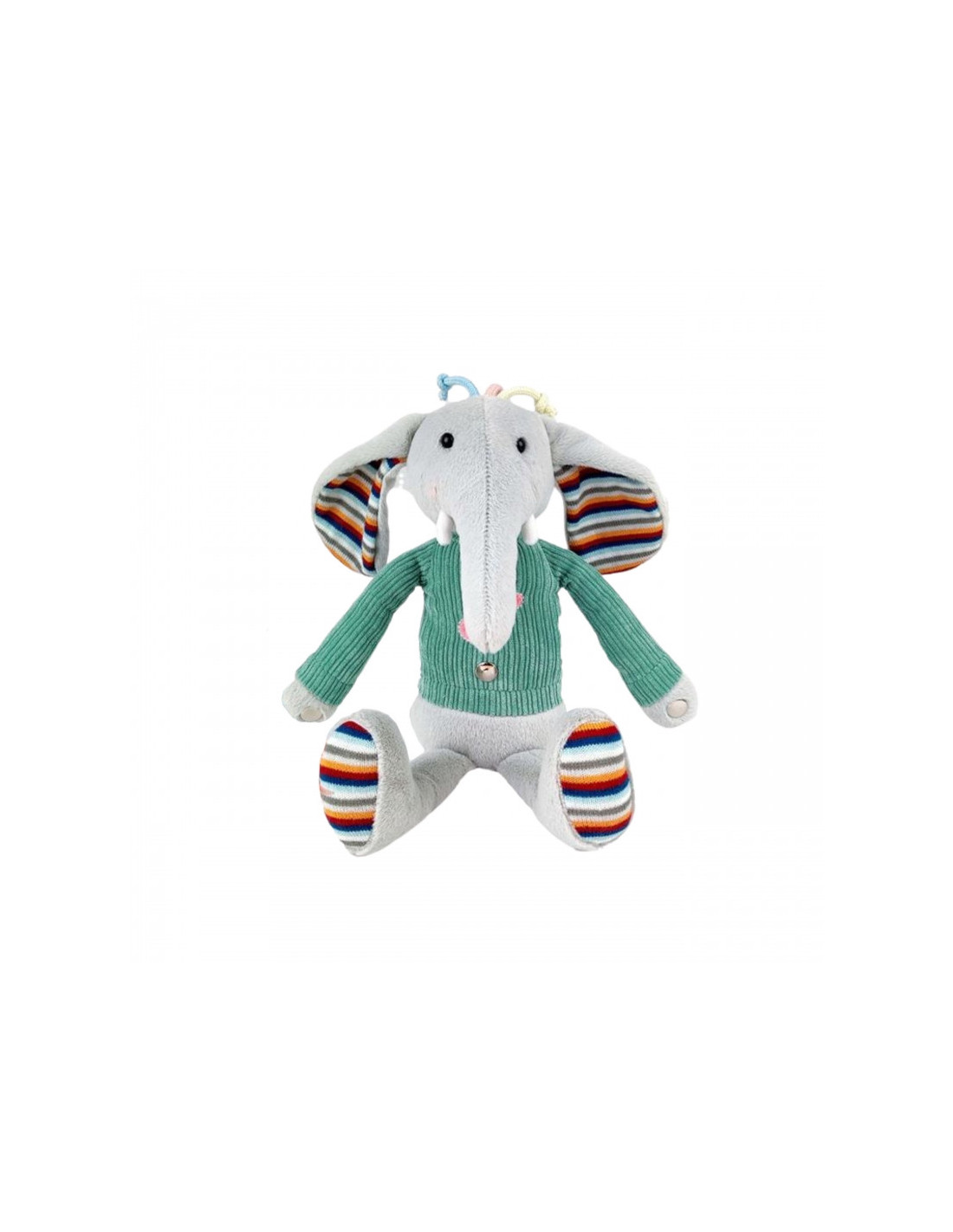 Przytulanka jest wyposażone w trzy strefy sensoryczne - na łapkach i brzuszku, których dotyk zamienia się w muzykę. A jego różowe policzki są oświetlone, tworząc prawdziwą bajeczną atmosferę wokół zabawki. Przytulanka ubrana jest w sweterek pod którym schowane jest miejsce na 3 baterie.Ten miękki w dotyku słonik stanie się przyjacielem dziecka na wiele lat.
