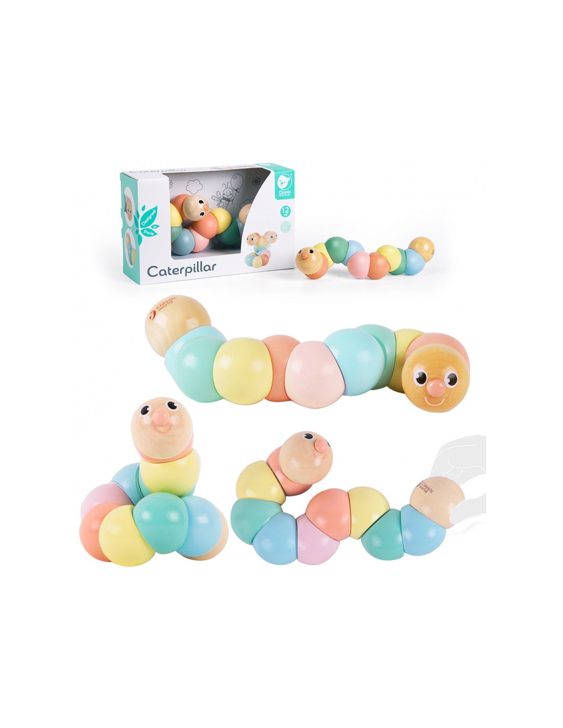 Деревянная гусеница CLASSIC WORLD, разноцветная, для сгибания и скручивания