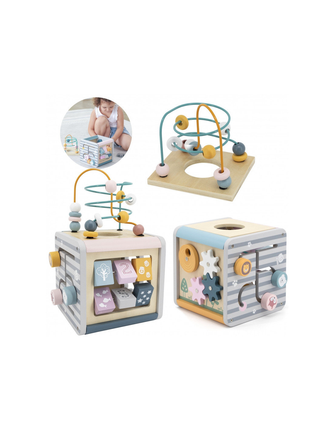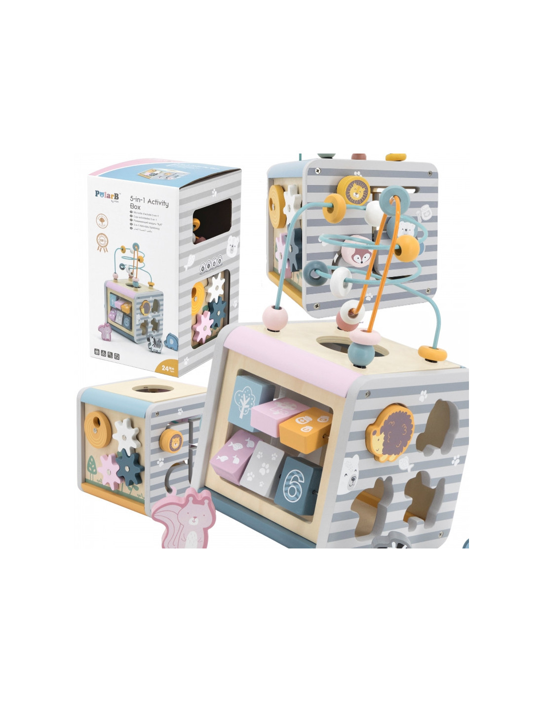 Деревянный развивающий игровой центр VIGA PolarB Activity Box, кубик 5 в 1