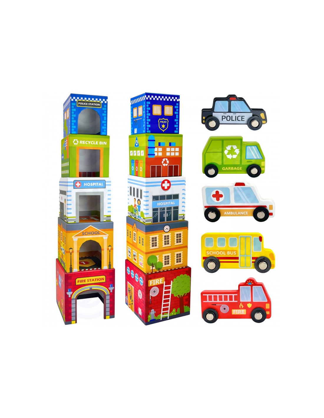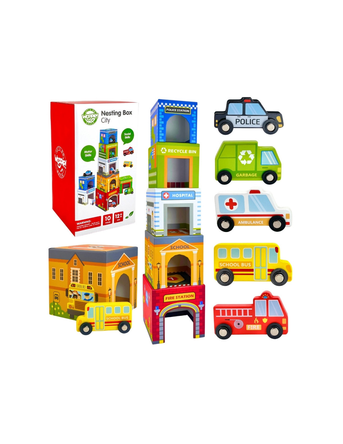 WOOPIE GREEN Кубики-пазлы Городской транспорт в коробках + фигурки 10 шт.