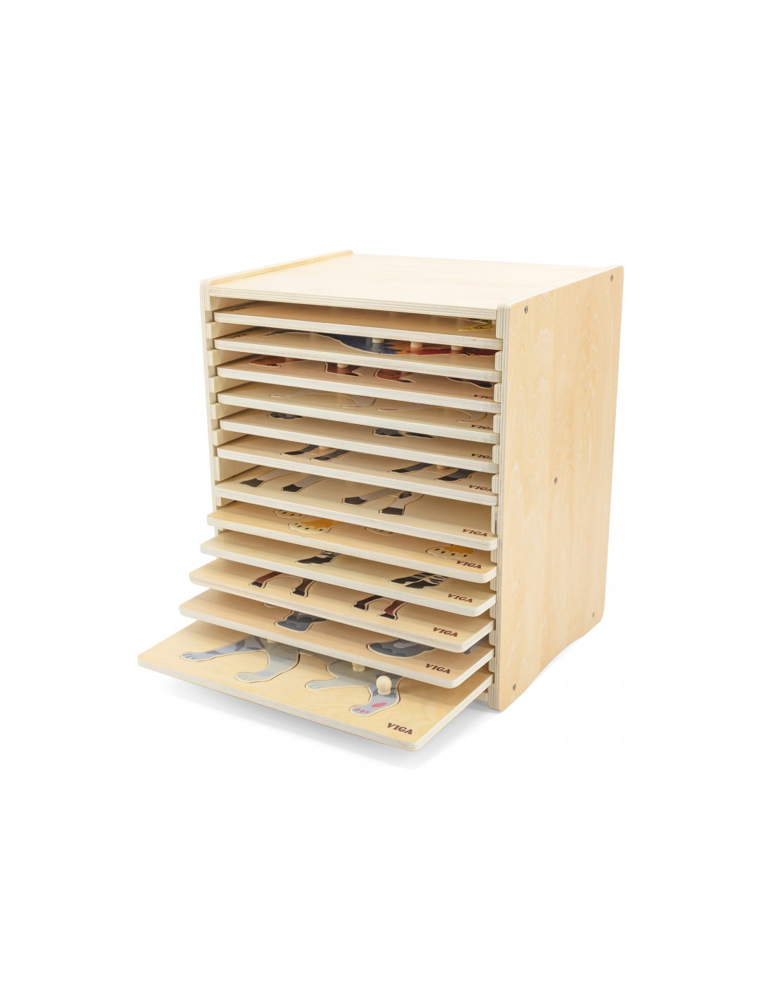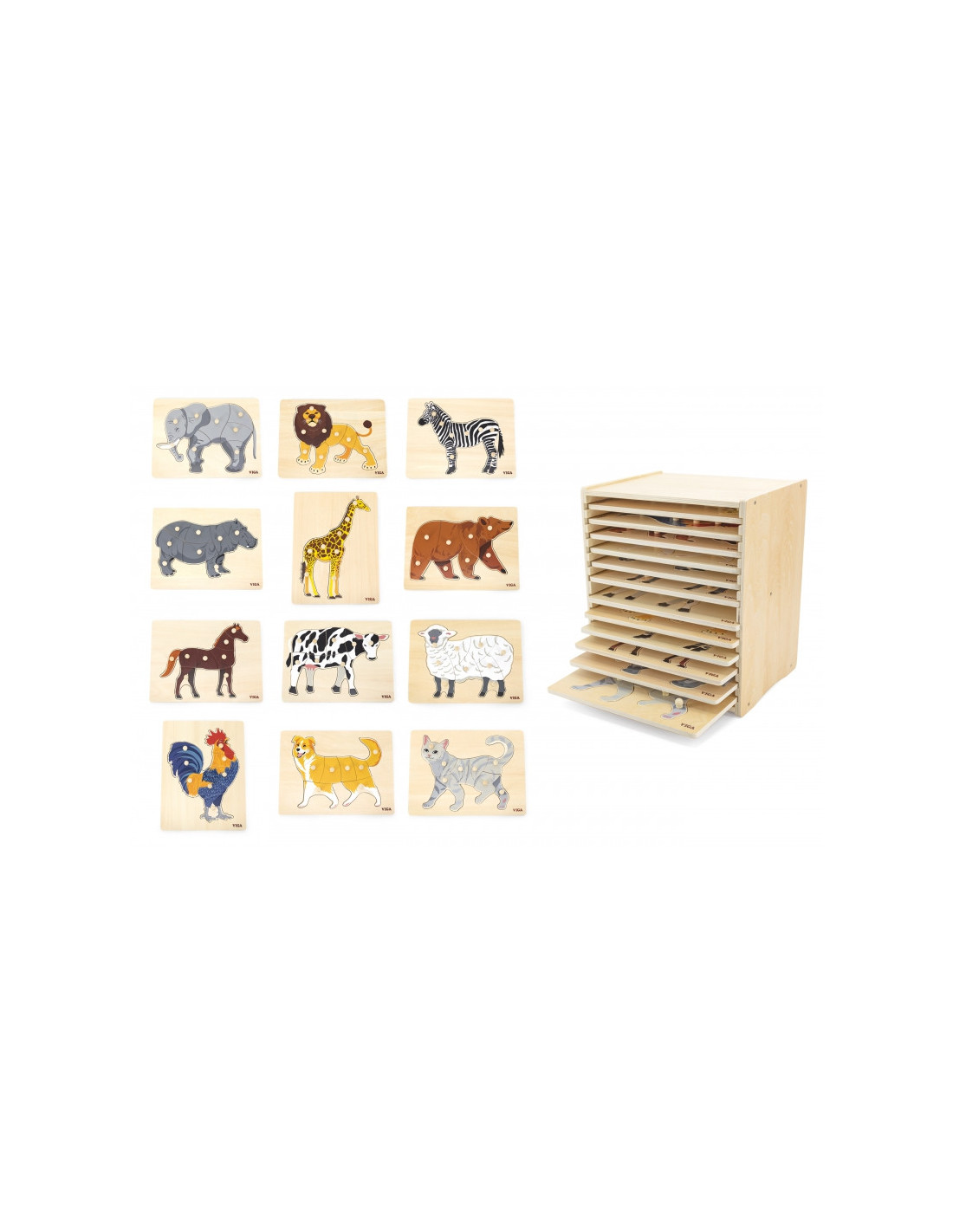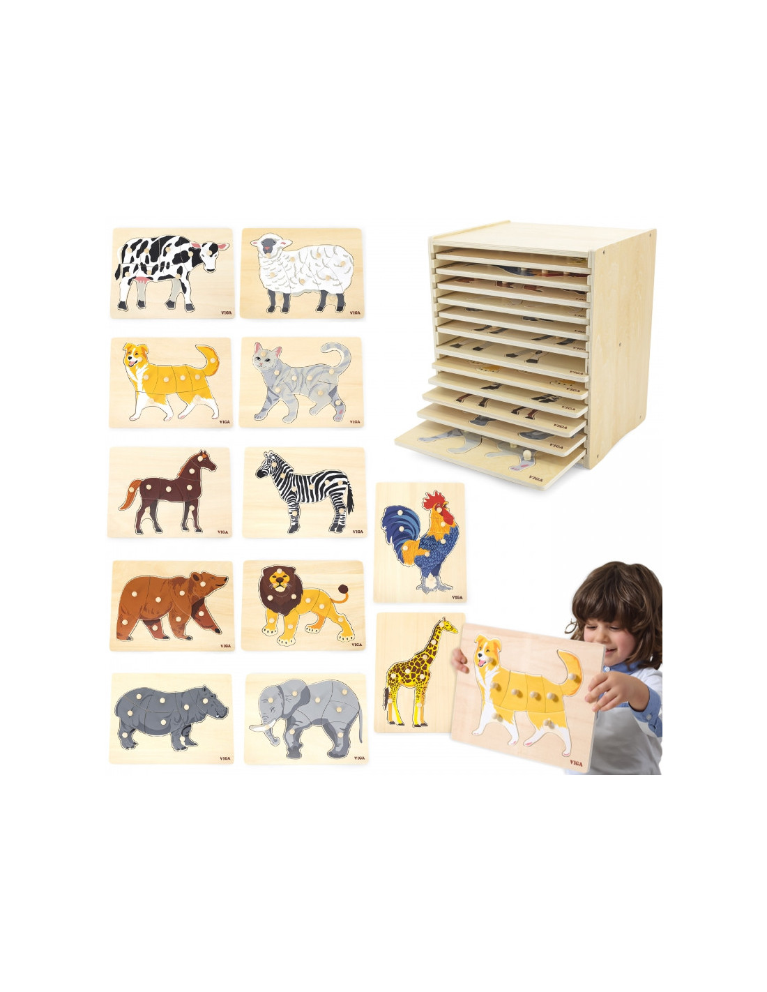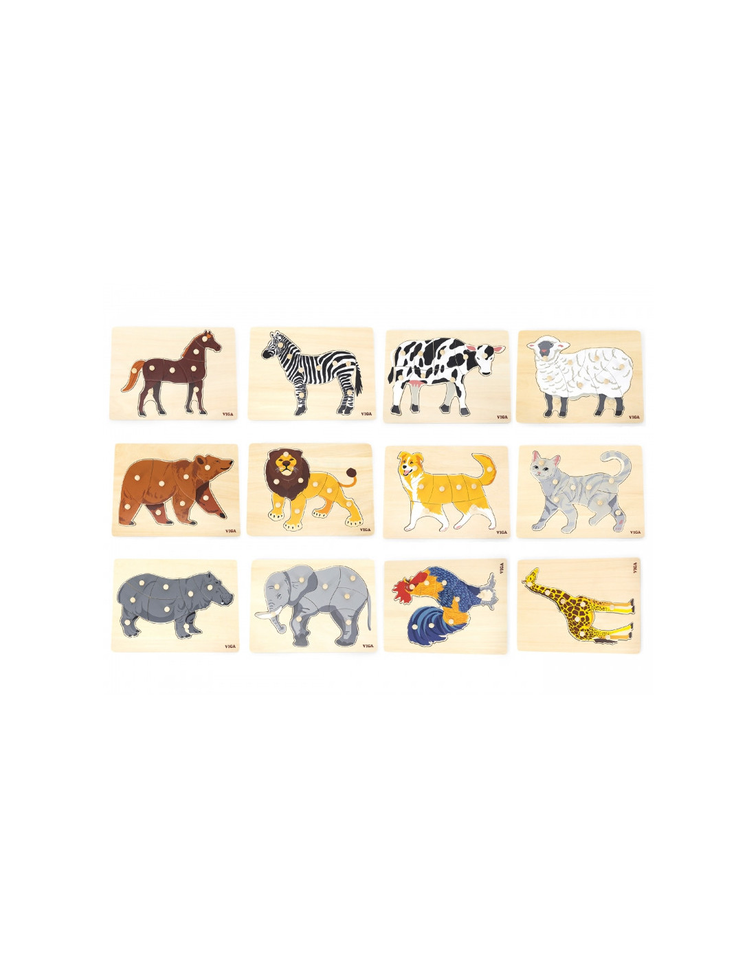 Набор деревянных пазлов VIGA (12 пазлов Монтессори с животными) + подставка