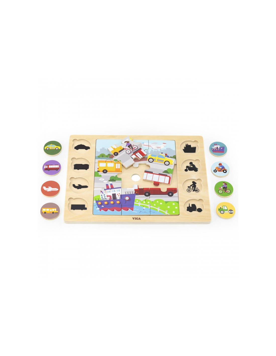Деревянный пазл VIGA «Угадай тень — Транспорт» из 17 деталей