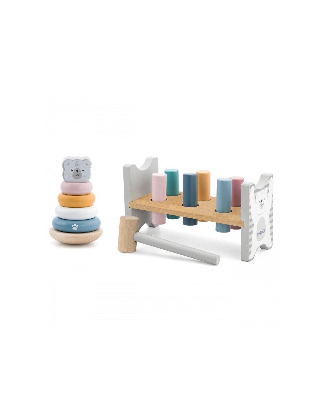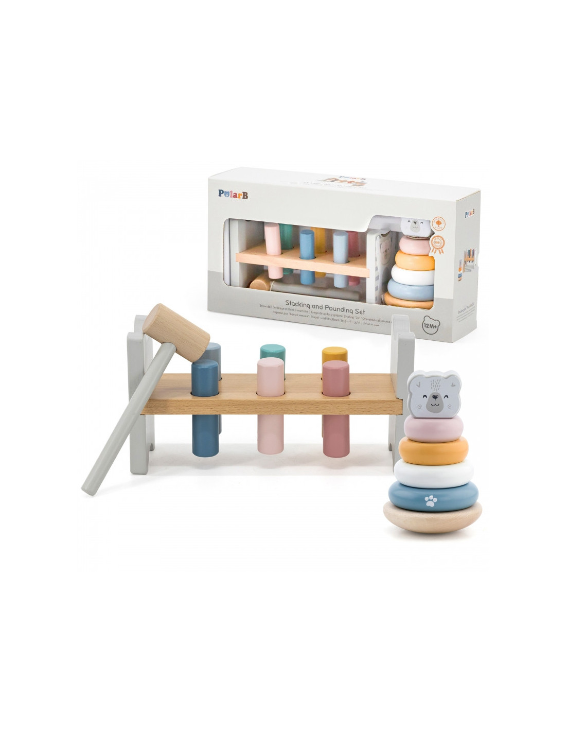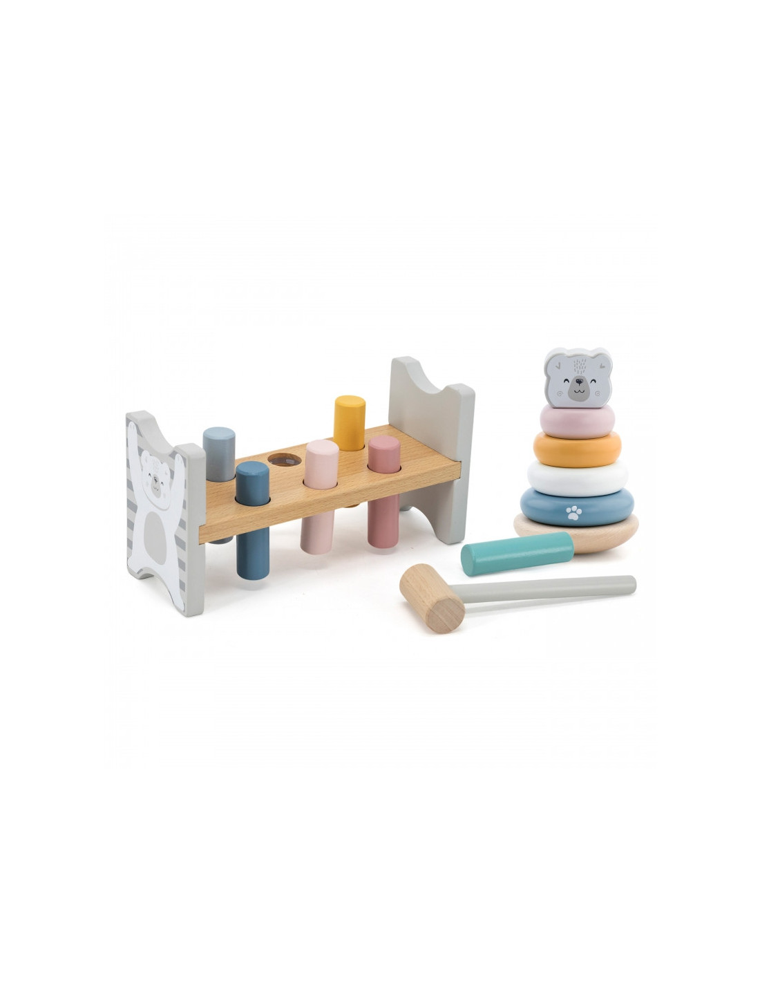 Набор VIGA PolarB: деревянная пирамидка + молоток «Белый медведь» Монтессори