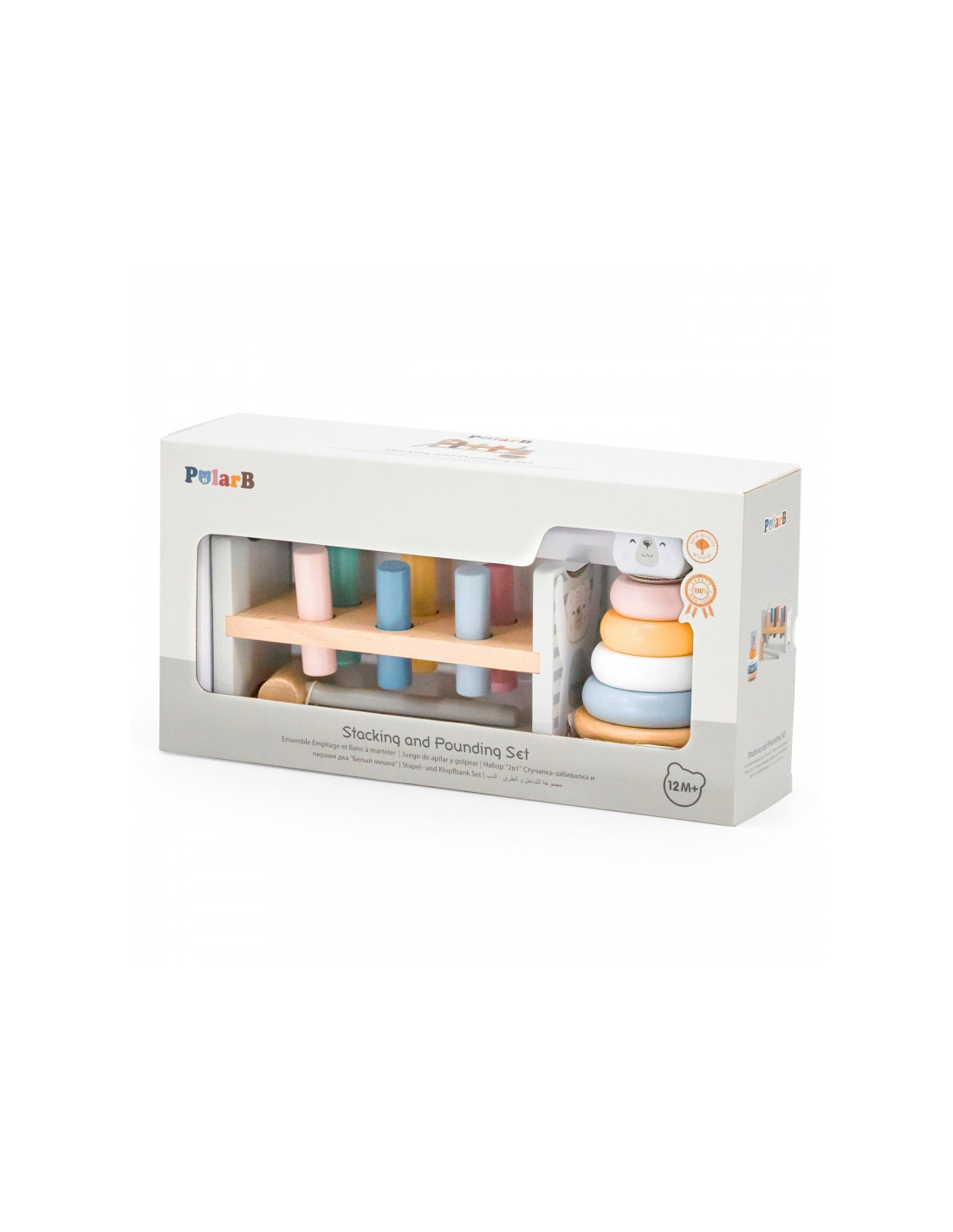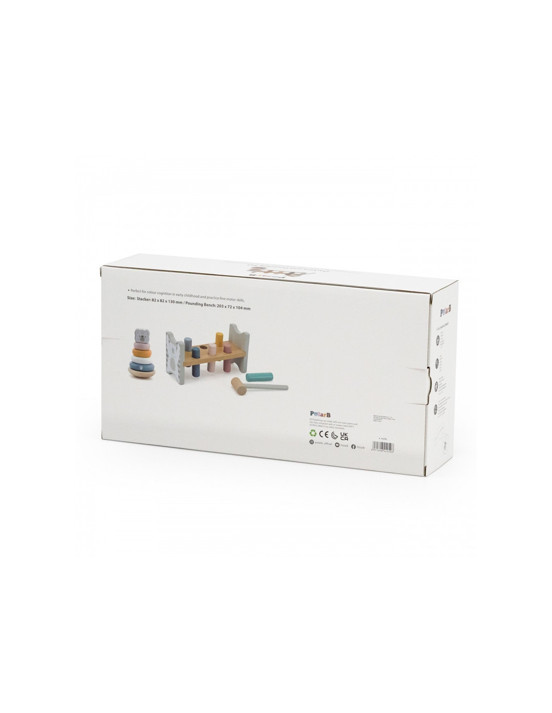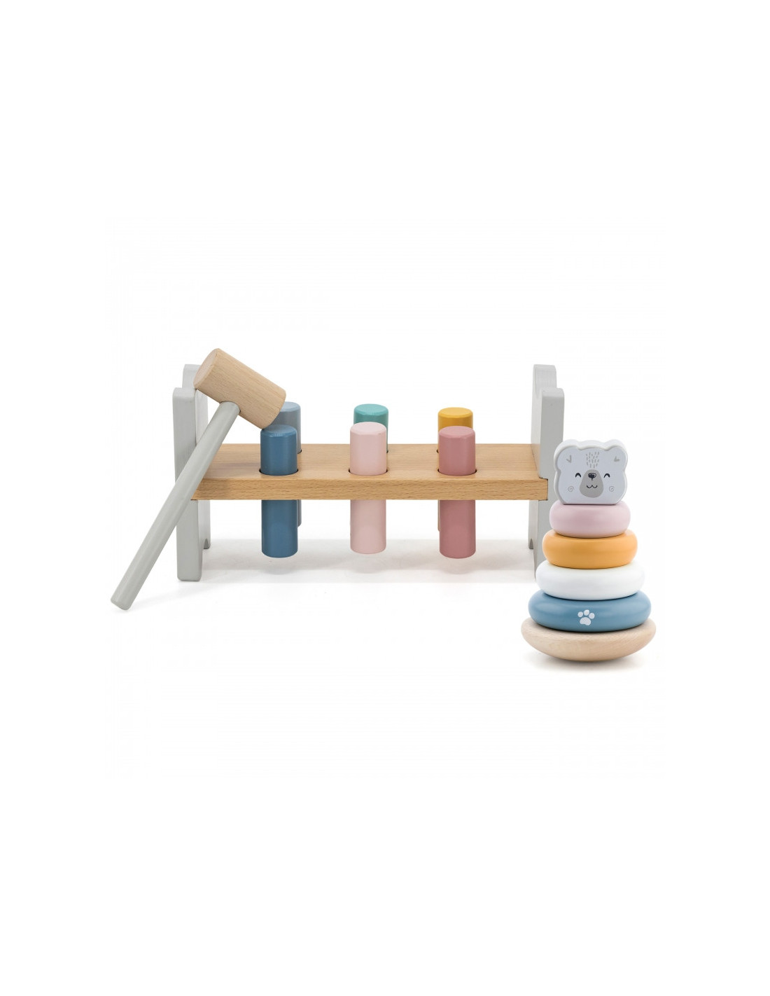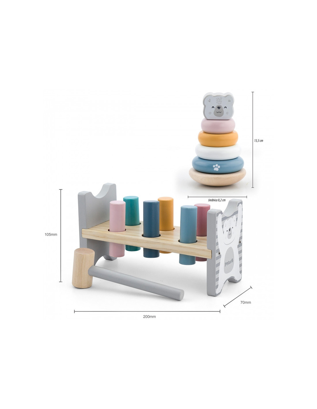 Набор VIGA PolarB: деревянная пирамидка + молоток «Белый медведь» Монтессори