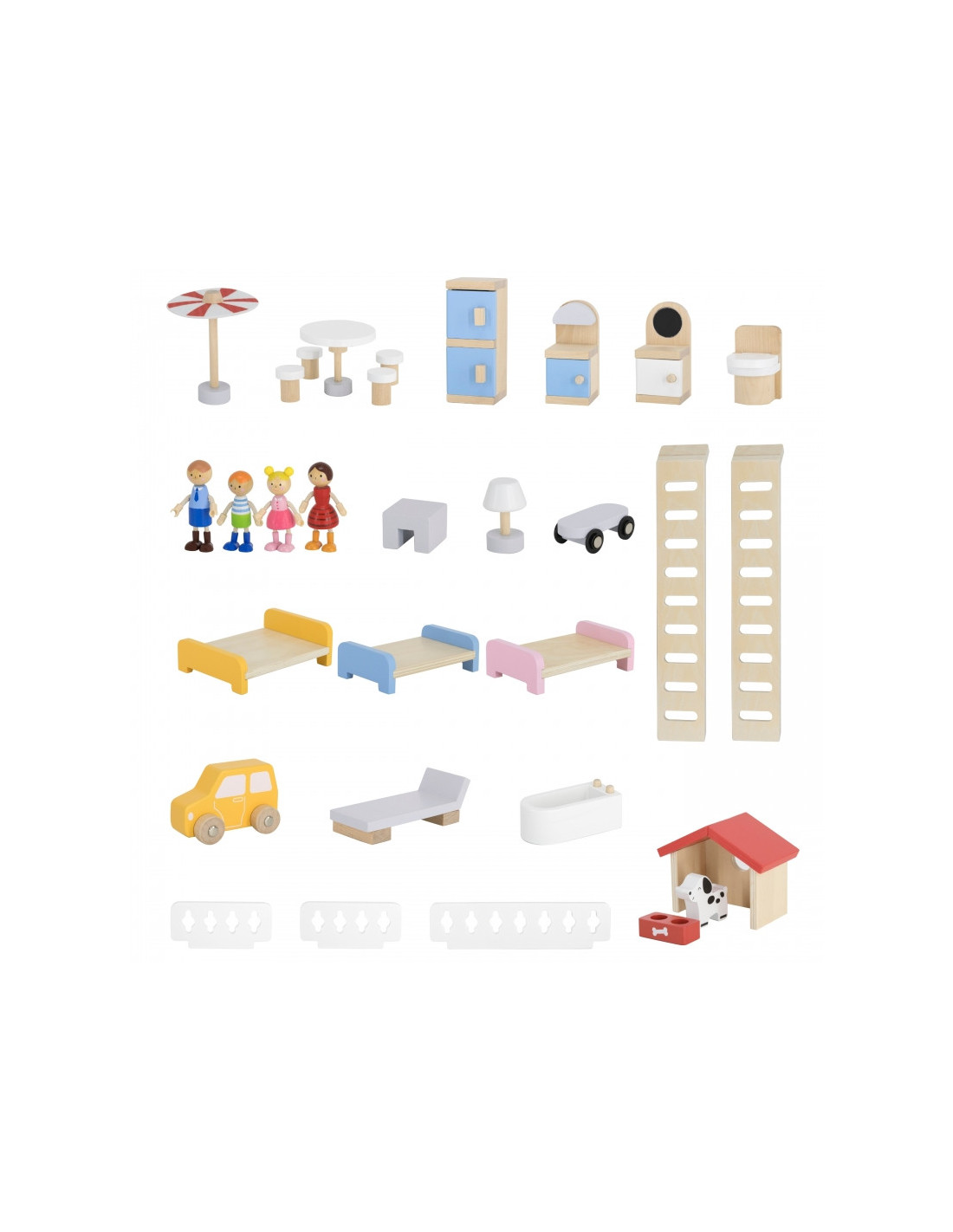 VIGA Zestaw Drewniany Domek dla Lalek z Laleczkami i Akcesoriami