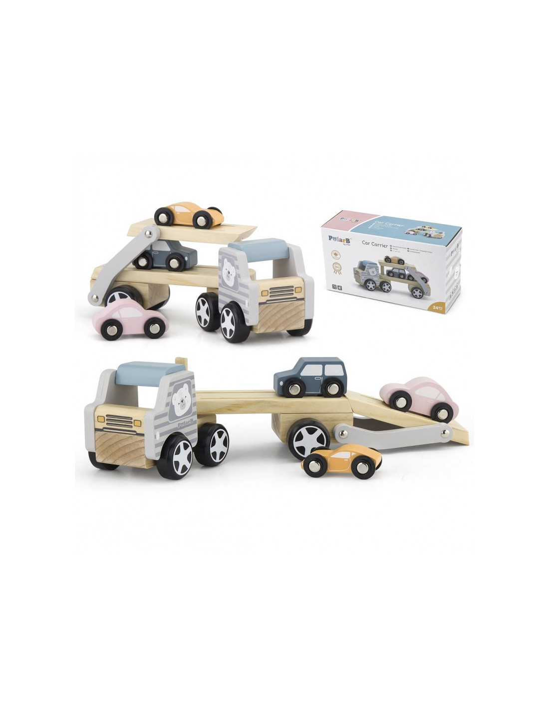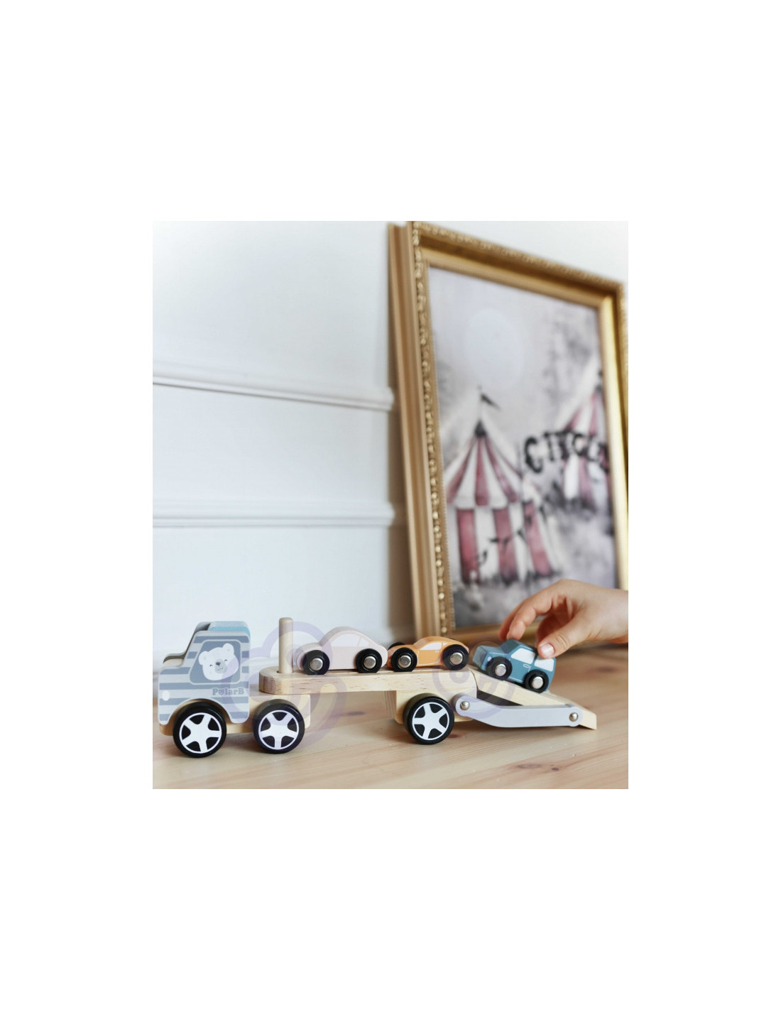 VIGA PolarB Drewniana laweta z samochodzikami Montessori