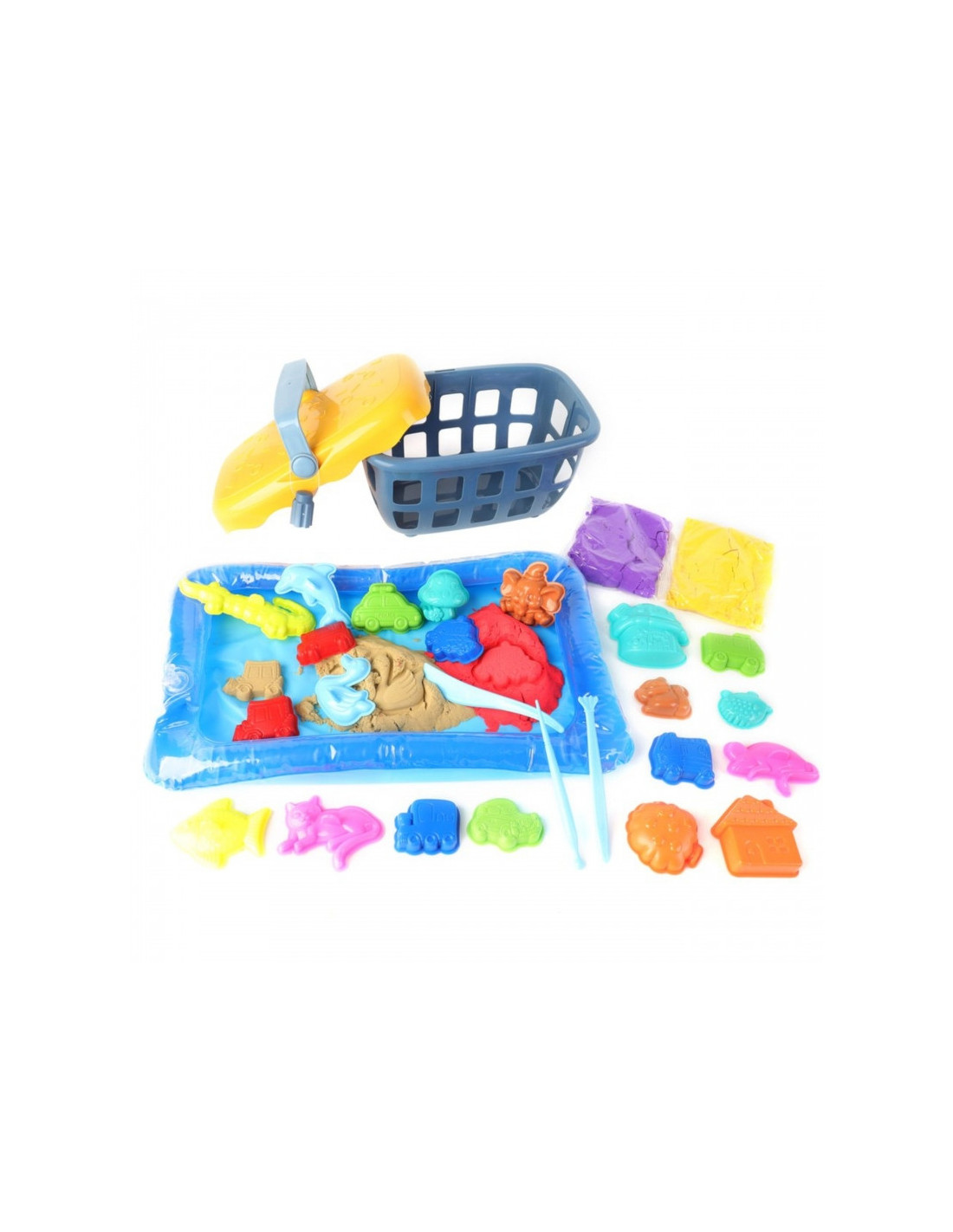 WOOPIE Piasek Kinetyczny 0,8 kg Zestaw w Koszyku z Foremkami + /