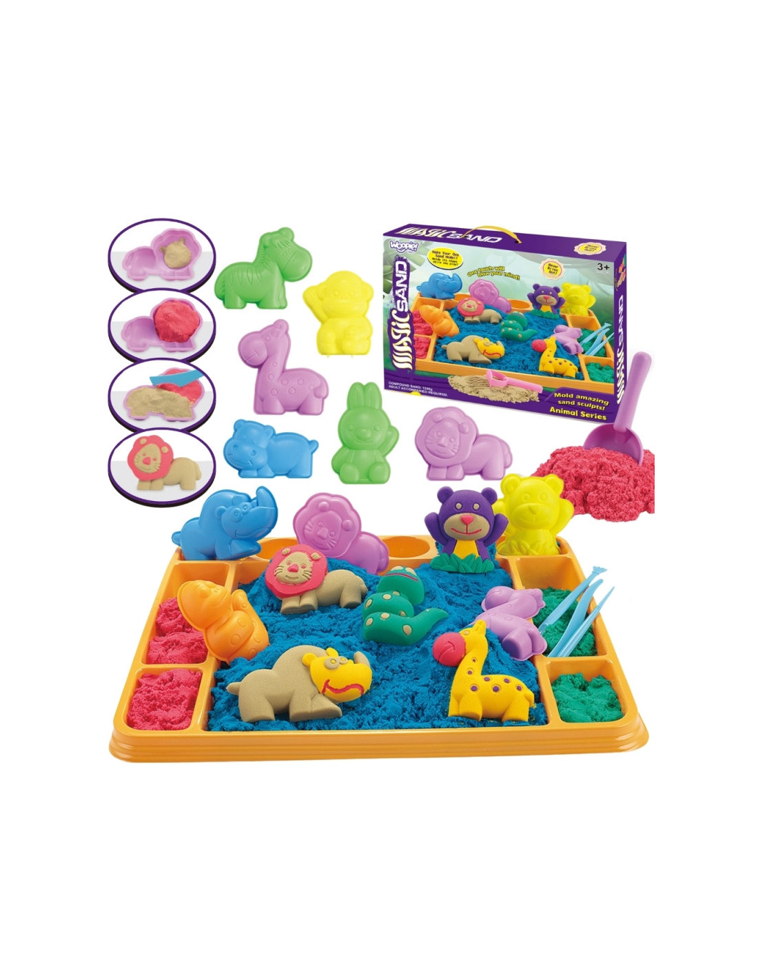 WOOPIE Piasek Kinetyczny 1,2 kg Zestaw XL ZOO Stolik z Foremkami