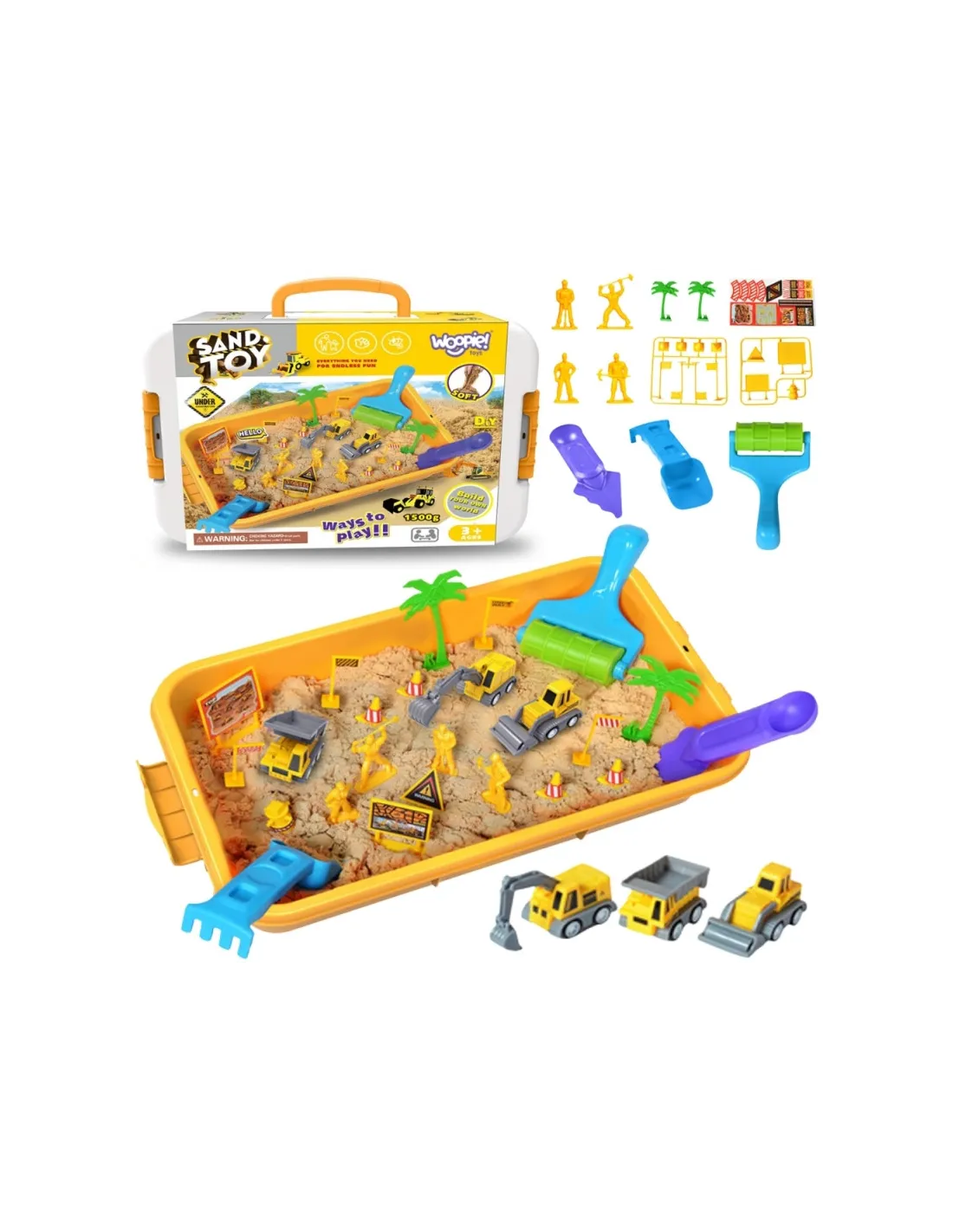 Набор из кинетического песка WOOPIE 1,5 кг XXL, стол для стройплощадки с формочками и транспортными средствами