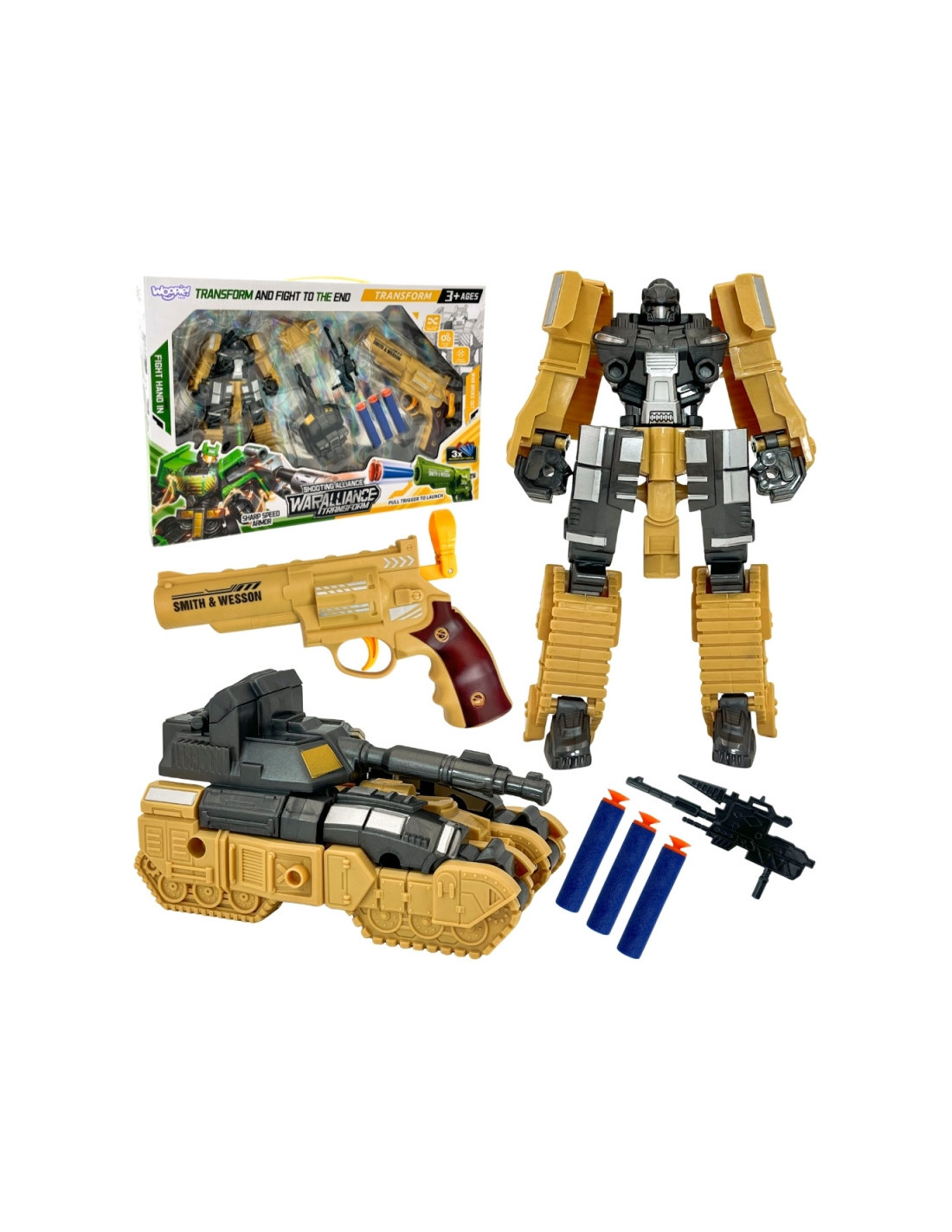 WOOPIE Zestaw 3w1 Robot Transformujący Czołg i Wyrzutnia na Strzałki Brązowy