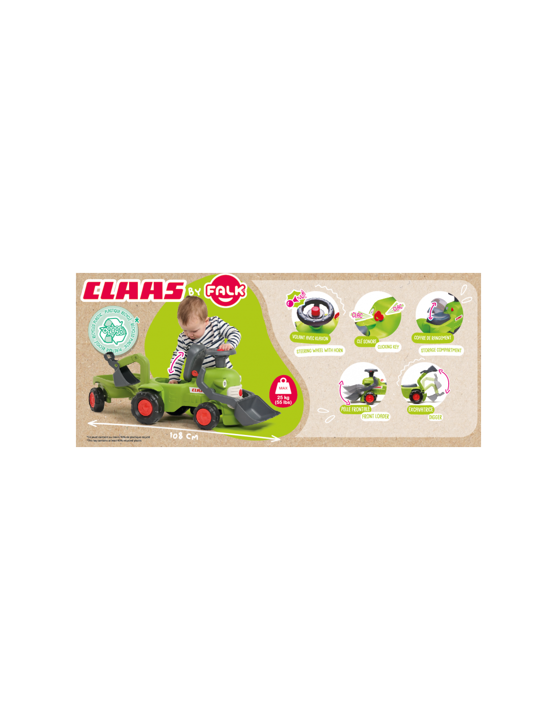 FALK Traktorek Claas Jeździk z Przyczepką Ładowarką i Łyżką
