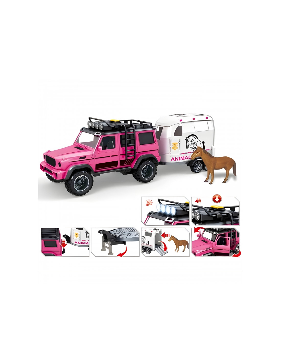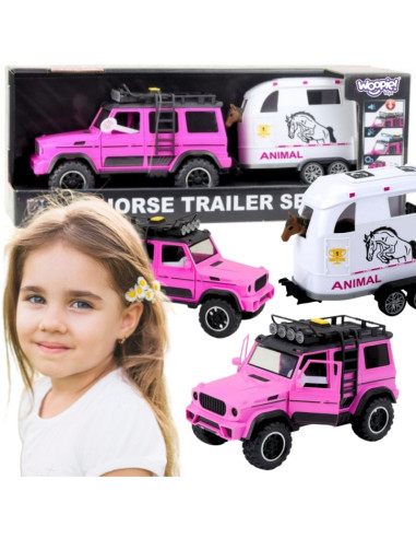 ВУПИ Розовый внедорожник с прицепом и набором фигурок лошадей