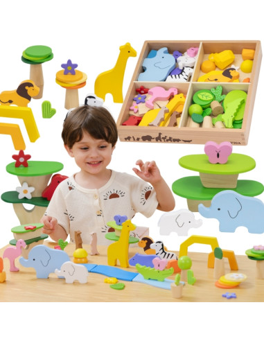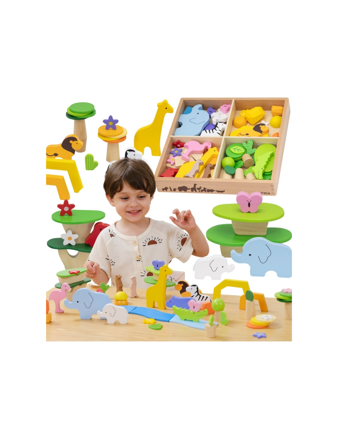 VIGA Деревянные кубики Красочные тропические истории Коробка 55 шт.