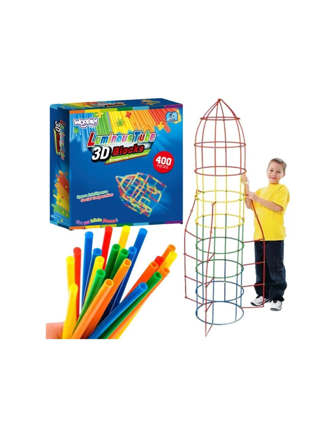 Строительные блоки WOOPIE Светящиеся трубочки 400 шт.