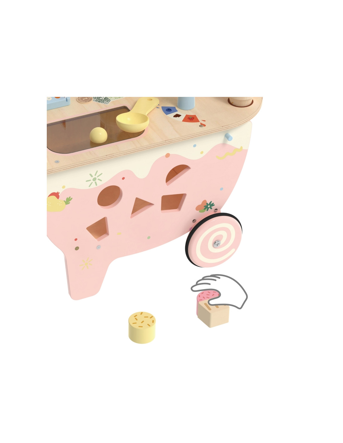 - - Функции игрушки: кафе-мороженое, сортировщик, лабиринт, доска для рисования мелом