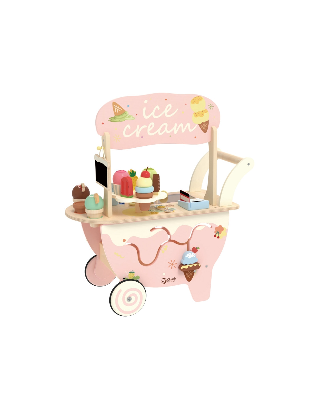 CLASSIC WORLD Деревянная тележка для мороженого 3 в 1 на 40 предметов.