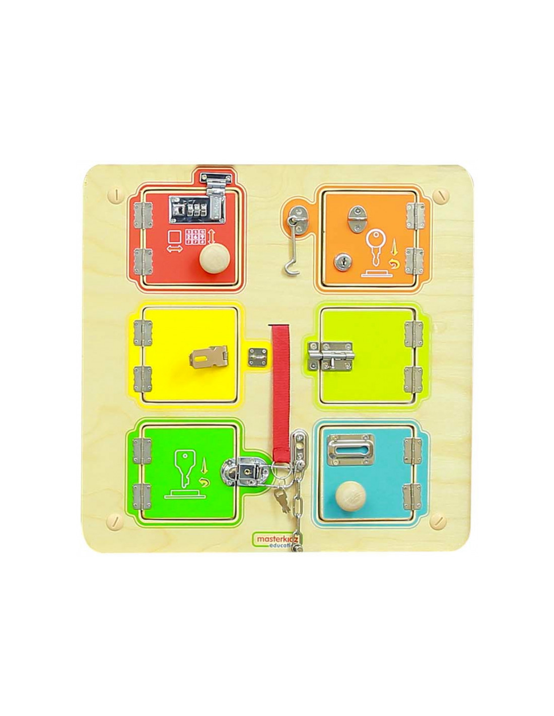 MASTERKIDZ Учимся открывать и закрывать замки. Настенная манипуляционная доска