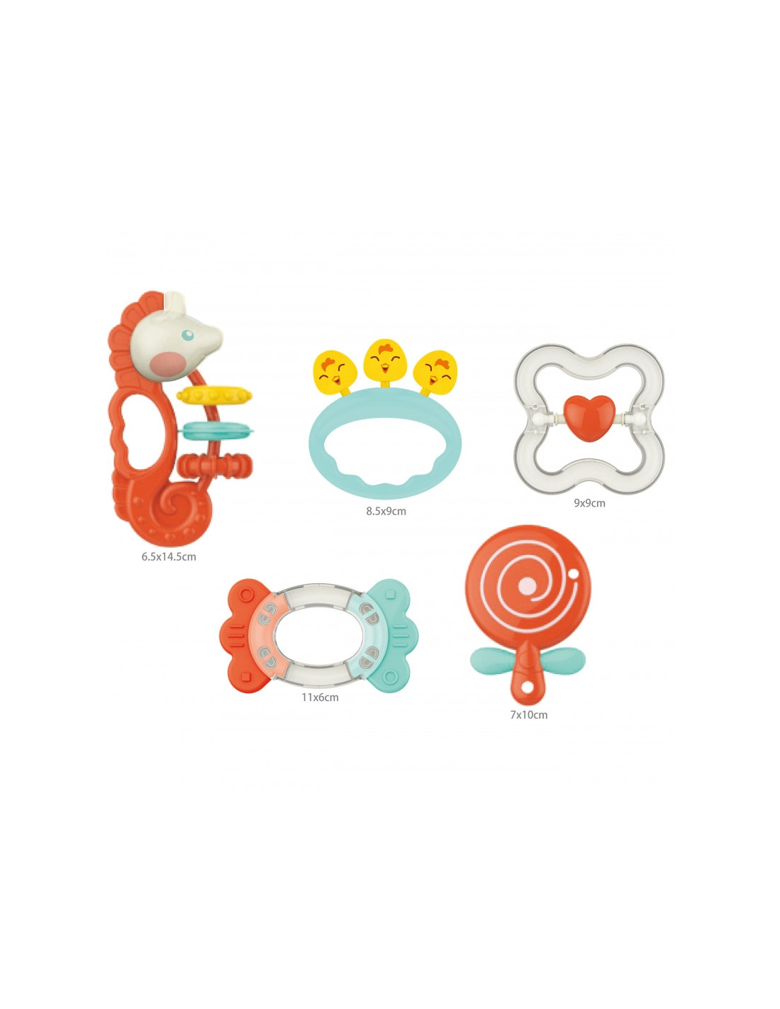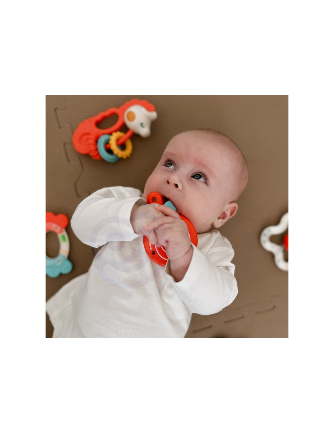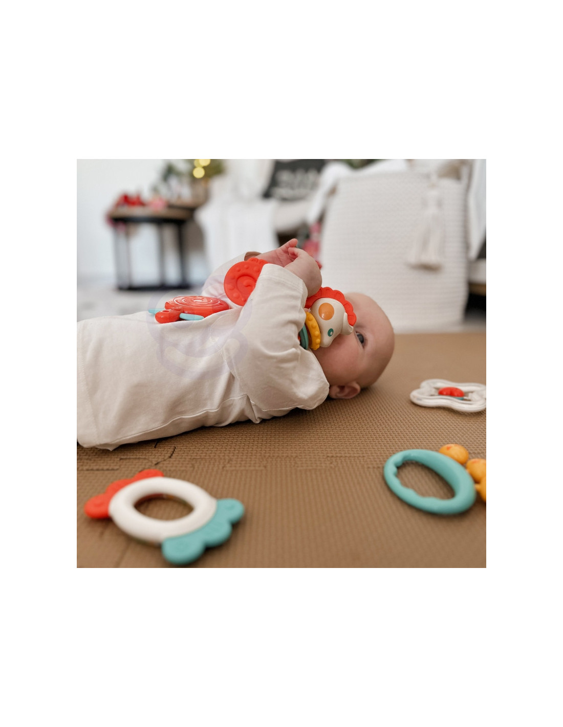 Набор BabyChews-Rattles от бренда WOOPIE содержит 5 разноцветных деталей, призванных помочь Вашему малышу во время прорезывания зубов. Прорезыватели не только приносят облегчение больным деснам, но и стимулируют зрительное и слуховое развитие. Кроме того, разминаемая и выпуклая форма и различные текстуры стимулируют развитие чувства осязания.