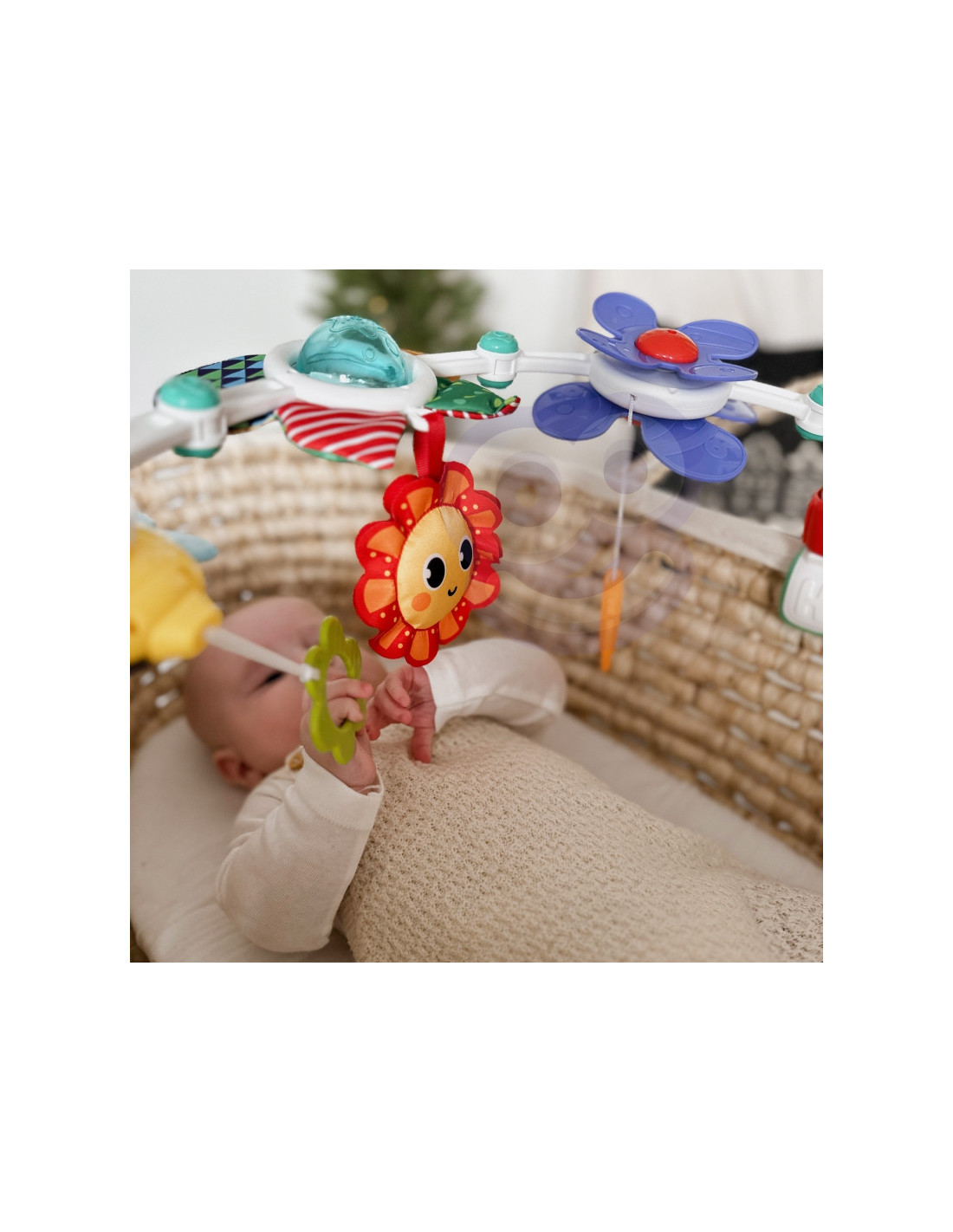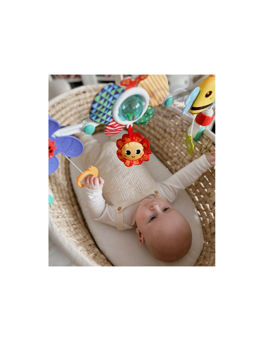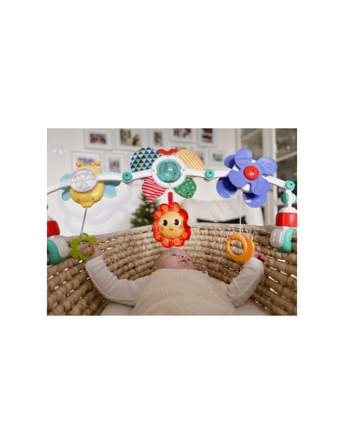 Повязка на голову "Игрушечная арка " от WOOPIE - это универсальная игрушка, которая придаст шарм и развлечет любую коляску, автокресло или кроватку. Она очень гибкая, поэтому Вы можете легко прикрепить ее практически в любом месте. На ободке есть различные игрушки: ветряная мельница в виде божьей коровки, которая крутится и вертится, когда ее приводят в движение, солнышко, которое пищит, когда его сжимают, погремушка в виде бабочки с прозрачным шариком, в котором прыгают разноцветные шарики и шуршит ткань, бирка в виде улитки и цветок, который можно использовать в качестве прорезывателя. Каждая из этих игрушек имеет различную текстуру, что стимулирует чувство осязания малыша и помогает развивать его моторику.