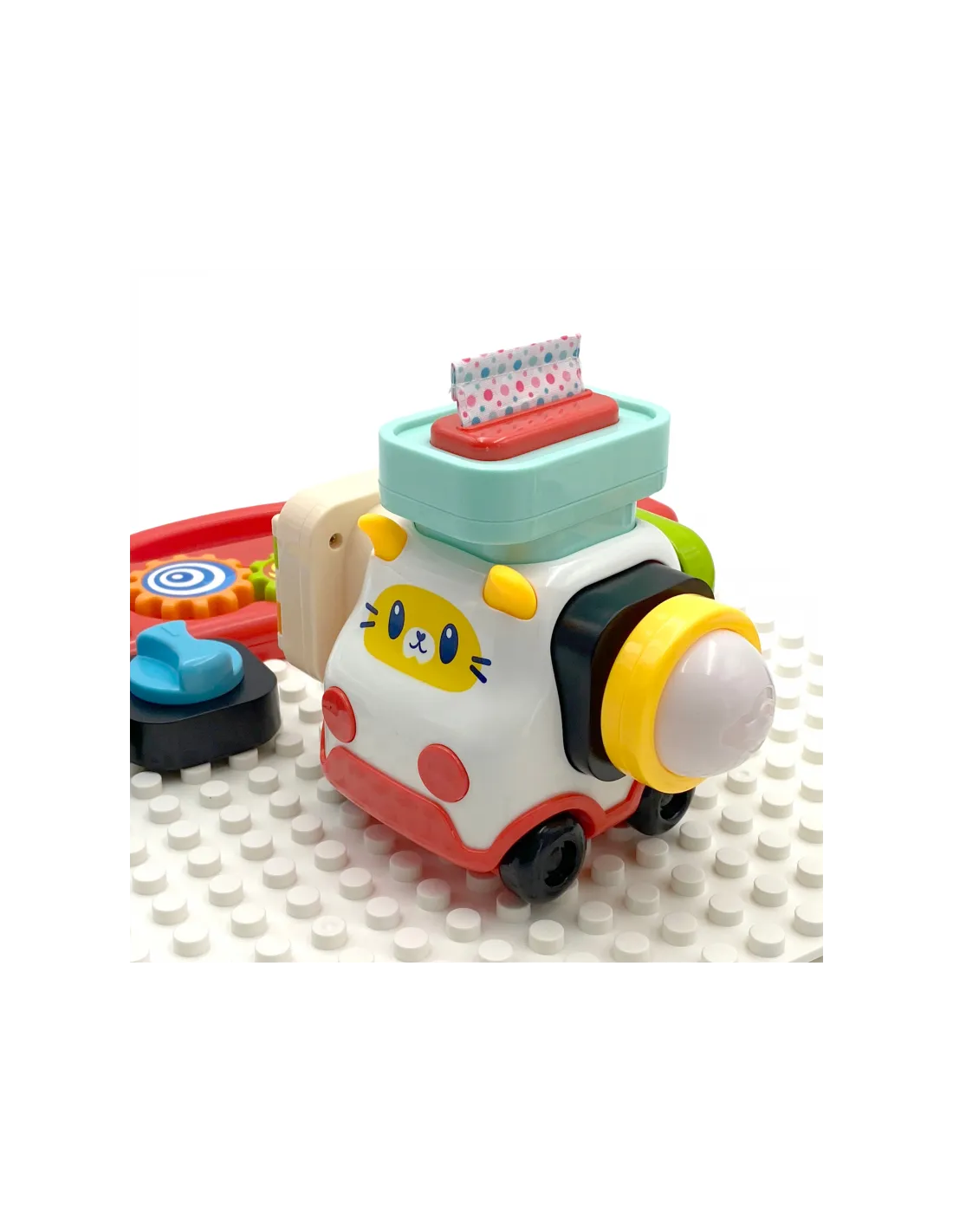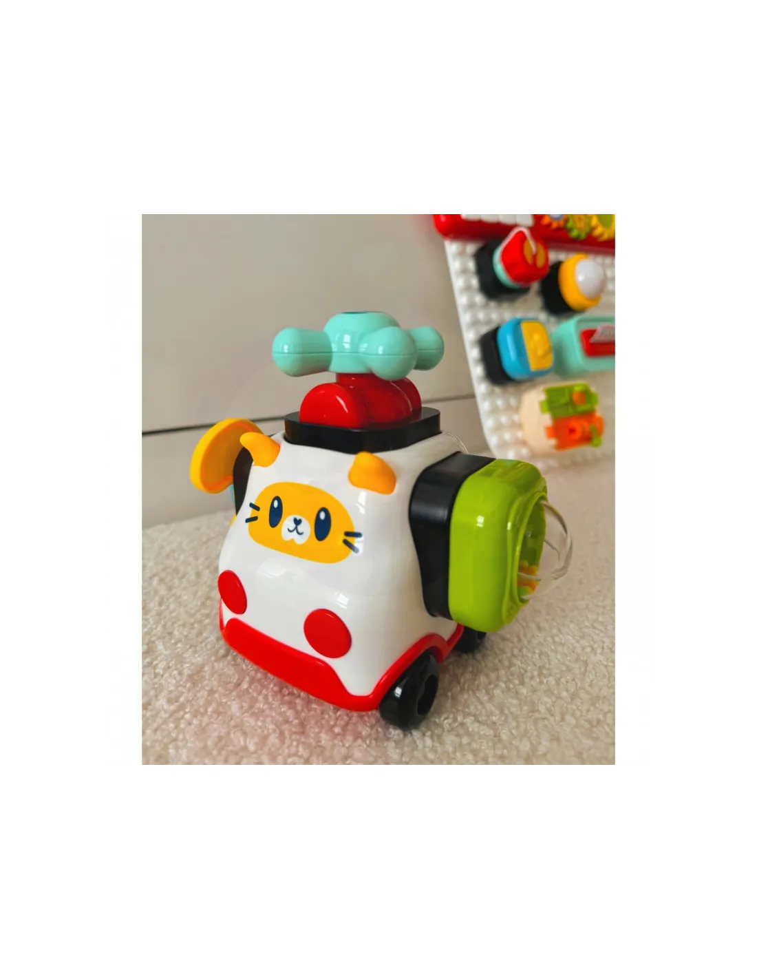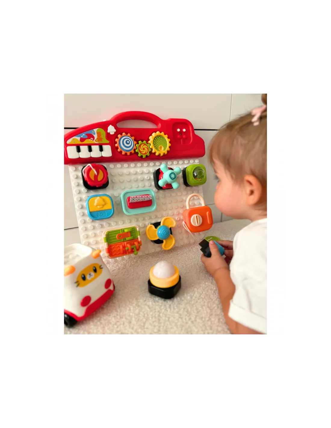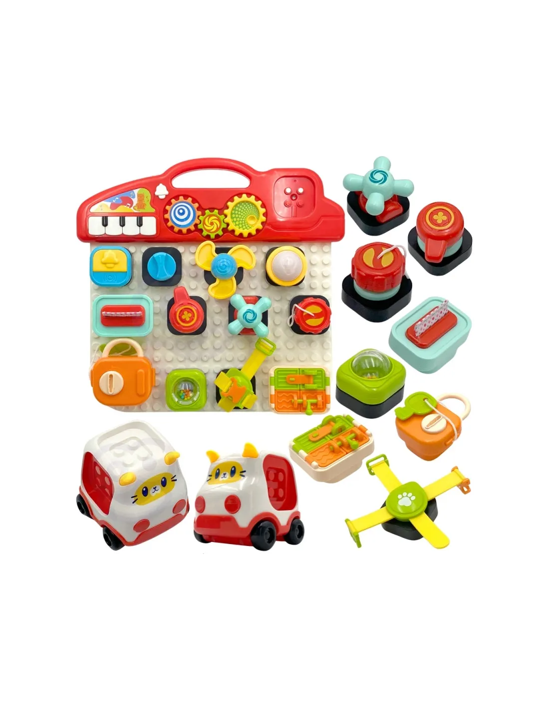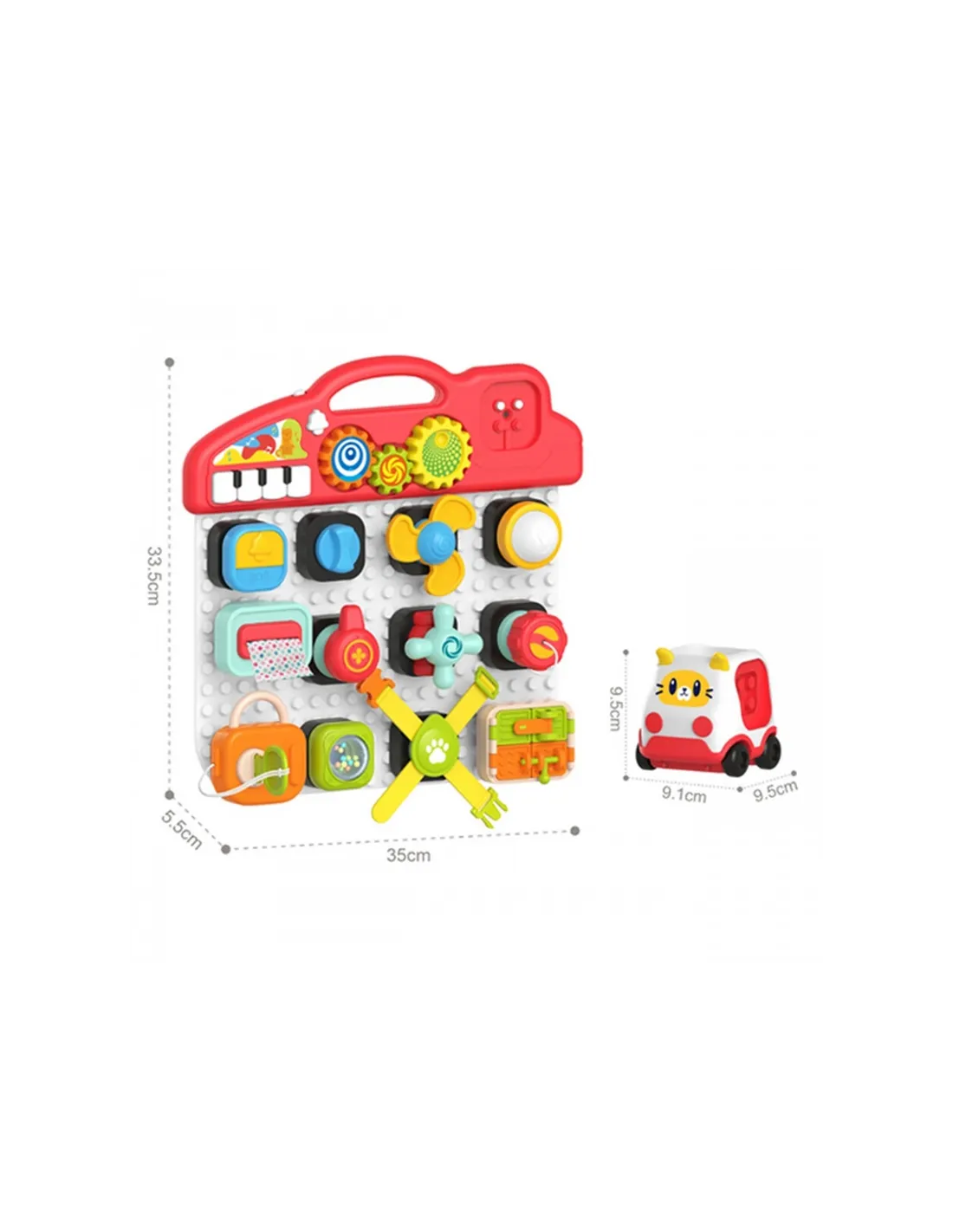 Красочная панель активности от бренда Woopie это увлекательная развивающая игрушка, призванная способствовать сенсорному и моторному развитию детей. Панель состоит из множества интерактивных элементов, которые можно прикреплять и откреплять по своему усмотрению, как и блоки. В набор также входит автомобиль в форме кошки, к которому можно прикрепить элементы панели.