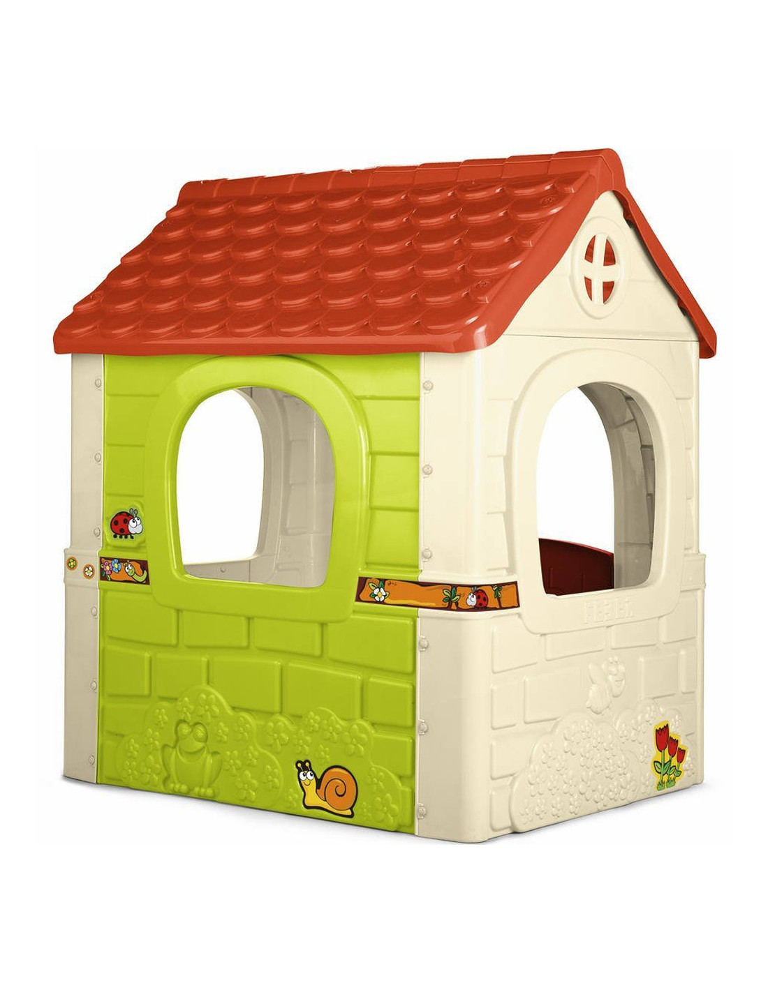 Фантазийный садовый домик с просторным внутренним пространством для творческих игр. Изготовлен с использованием новейших технологий и в соответствии с высочайшими стандартами безопасности. Входная дверь оснащена отверстием для почтового ящика . Этот функциональный и реалистичный домик выполнен в весенней тематике. Вся конструкция изготовлена из красочного, устойчивого к солнечному свету и перепадам температуры пластика.