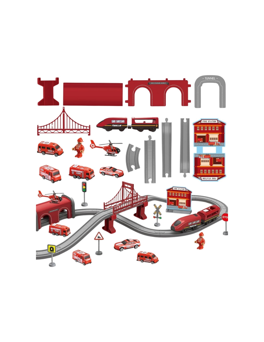 WOOPIE Набор электропоездов Локомотив Пожарная часть 66 предметов.