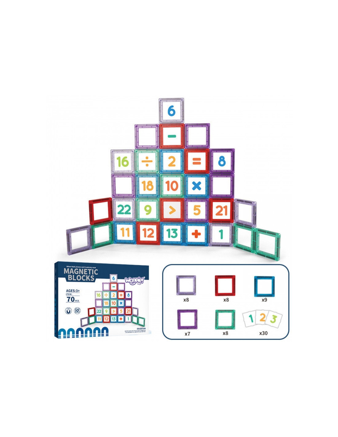 WOOPIE Klocki Magnetyczne Konstrukcyjne 3D Zestaw Edukacyjny Nauka Liczenia 70 el.