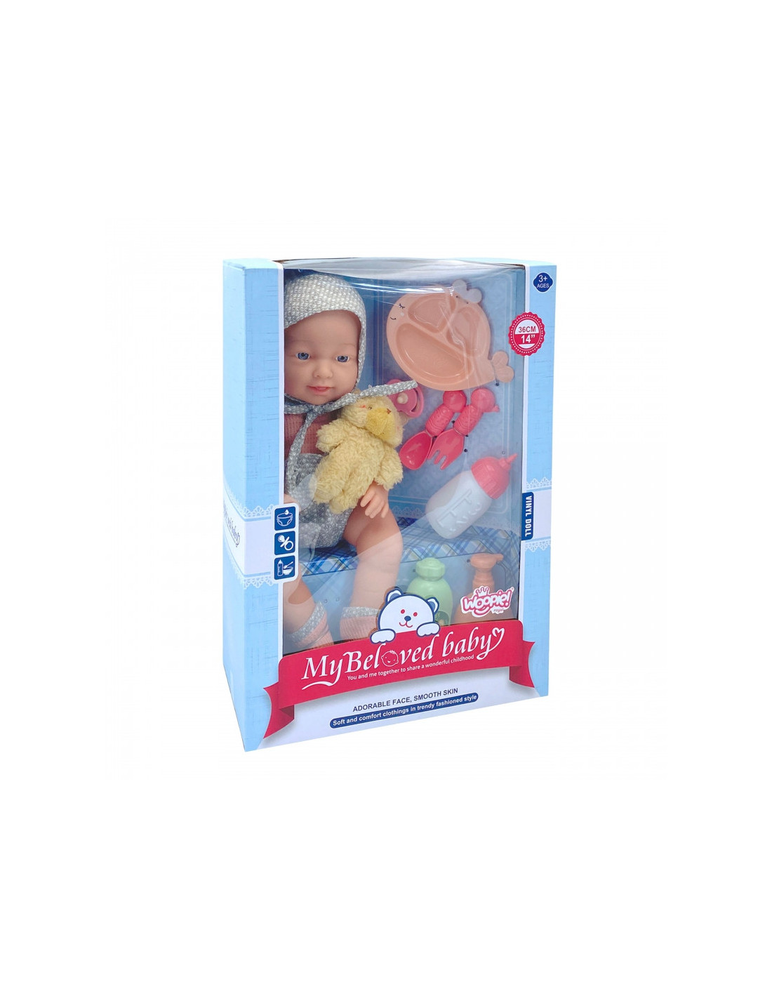 WOOPIE ROYAL Lalka Bobas 36 cm w Ubranku z Misiem Akcesoria do Karmienia