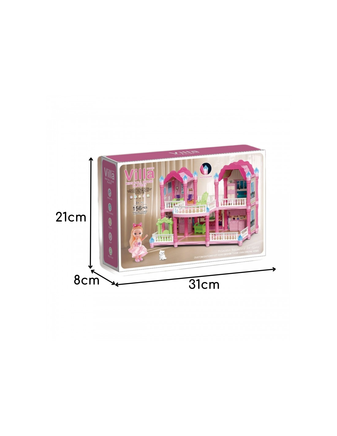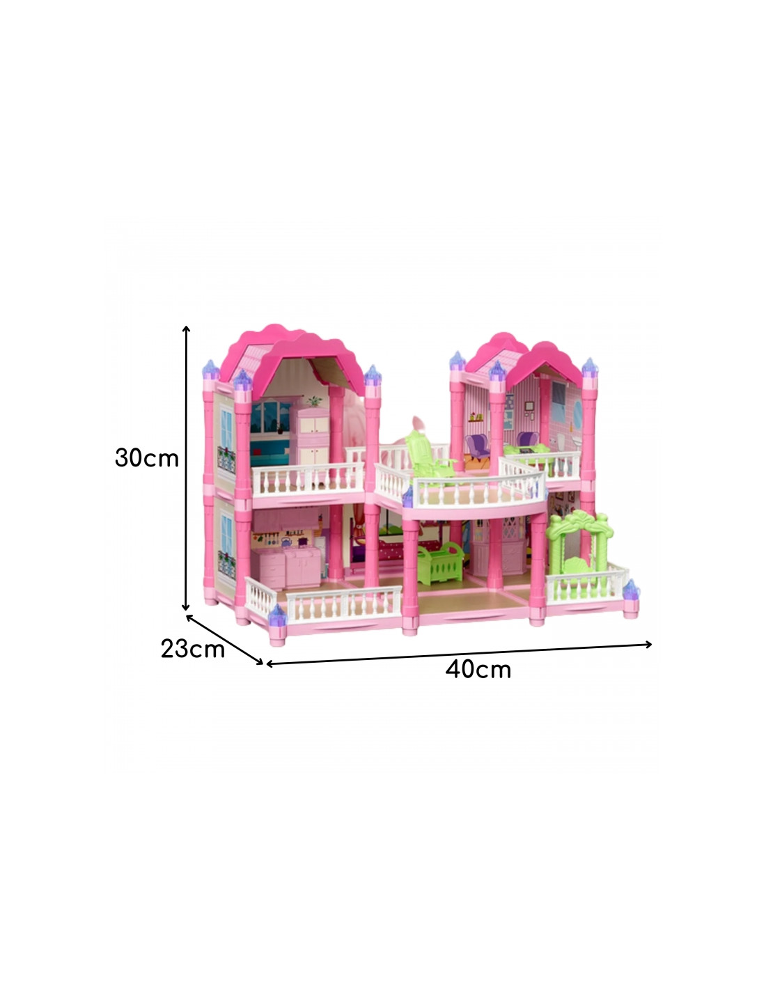 «Садовая вилла» от Woopie — уникальный кукольный домик, который подарит детям часы волшебной игры и творческого конструирования! Эта игрушка перенесёт малышей в сказочный мир, где они смогут придумывать собственные истории, обустраивать интерьер и играть за любимых персонажей. Это больше, чем просто игрушка — это целый мир, который дети могут создать сами! Уникальная двухэтажная конструкция с прекрасными деталями, несколькими комнатами, террасой, реалистичной мебелью и светящимися башнями делает домик похожим на настоящий дворец принцессы! Цветовая гамма в нежных пастельных тонах — розовом, фиолетовом и мятном — создаёт уютную атмосферу, побуждающую к творчеству. Идеально подходит для игр с друзьями, братьями и сёстрами. Характеристики: